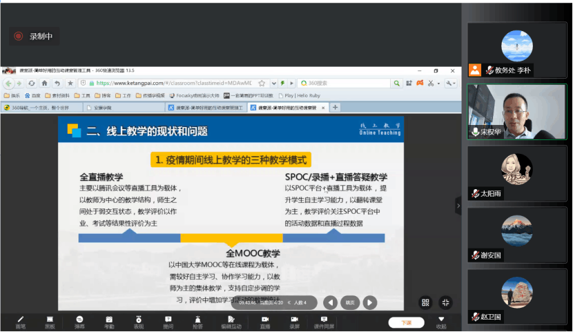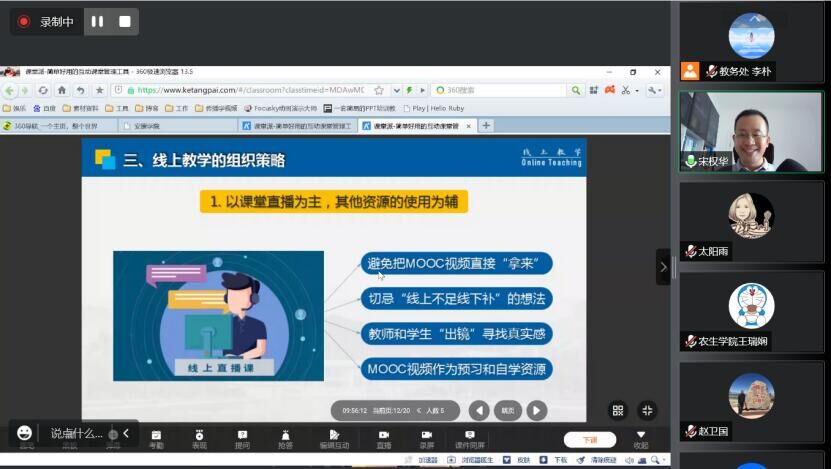 培训会邀请开元官网电子与信息工程学院宋权华副教授做《线上教学的工具、策略与组织方法》专题讲座,分别从线上教学的背景、现状和问题、线上教学的组织策略以及如何开展基于“资源+直播+互动”的线上教学等方面进行分享与互动交流。参训教师纷纷表示,本次培训内容充实且实用性强,对有效开展线上教学起到了积极的促进作用。
