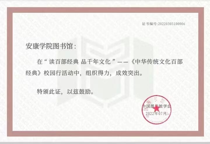 通过组织参与本次活动,在全校普及了《百部经典》系列书籍,积极引导青年学子传承和弘扬优秀传统文化,进一步增强了学生对中华传统文化的理解和认知,为培养学生的民族文化自信起到了积极作用,也为安康市创建国家文明城市增光添彩。