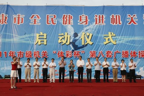 安康市全民健身进机关活动、安康市2011年市级机关“体彩杯”第八套广播体操比赛于6月10日在安康市金州广场举行。由我院36名教职工组建的代表队在比赛中获得了第二名的可喜成绩。