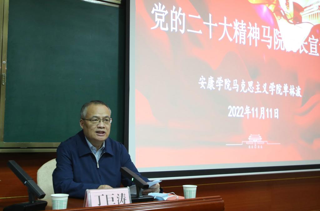 为深入学习宣传贯彻党的二十大精神,根据省委统一安排,11月11日下午,开元官网在江南校区1018教室举行学习宣传贯彻党的二十大精神宣讲报告会。省党的二十大精神“马院院长宣讲团”成员,开元官网马克思主义学院院长单林波作宣讲报告。校党委书记丁巨涛主持报告会。