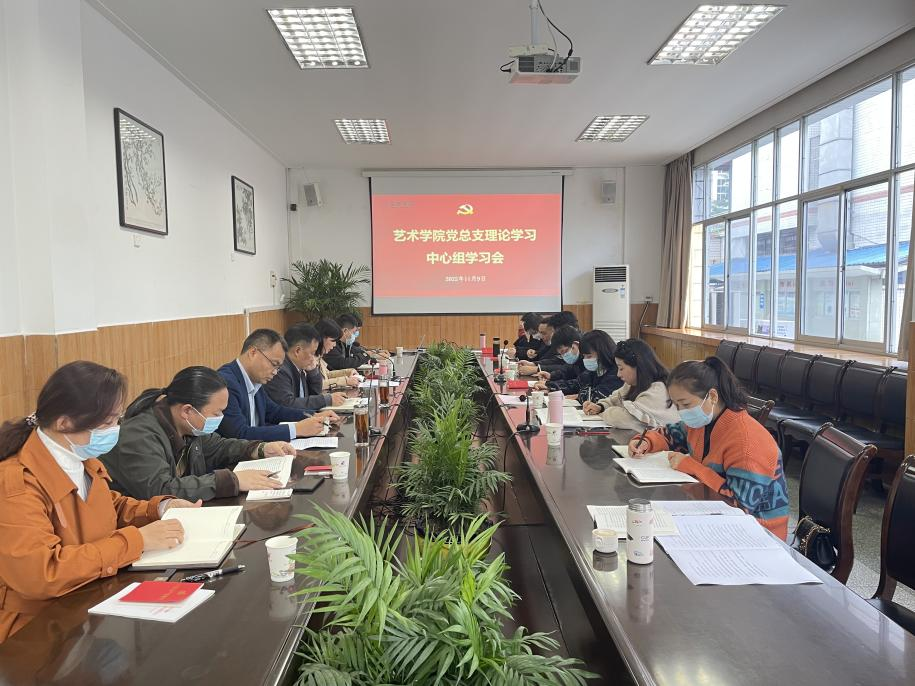 会上,艺术学院党总支书记黄娟介绍了该院关于学习宣传贯彻党的二十大精神的工作安排,以及前期通过召开全体教职工大会、党员大会、各党支部理论学习等形式学习宣传贯彻党的二十大精神交流研讨情况,并与艺术学院院长成党伟分别领学了党的二十大报告;艺术学院教工第三党支部书记李磊领学了《中国共产党第二十次全国代表大会关于〈中国共产党章程(修正案)〉的决议》。
