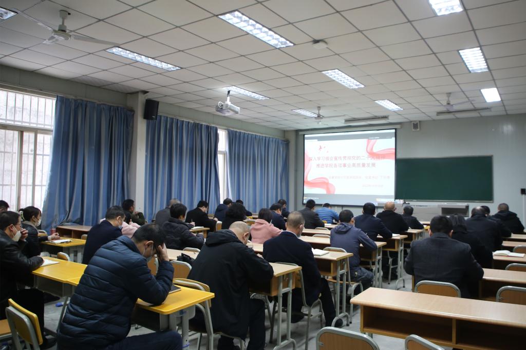 党委副书记、校长钟生海就贯彻落实会议精神,提出三点要求。一是高度重视,充分认识重大意义和核心要义。充分认识学习宣传贯彻党的二十大精神的重大意义,全面准确学习领会宣传贯彻党的二十大精神的核心要义。要切实把深入学习宣传贯彻党的二十大精神作为当前和今后一个时期的首要政治任务来抓。二是马上行动,掀起学习宣讲的热潮。会后,党委宣传部要拿出具体的宣讲安排,开展宣讲培训,宣讲团成员要积极承领任务,将党的二十大精神准确、全面、及时的宣传到每一位师生,做到“全覆盖”。三是学用结合,贯彻大会精神推动工作落实。学习领会党的二十大精神,进一步增强政治自觉、思想自觉、行动自觉,切实把党的二十大精神落实到学校工作各方面、全过程,推动学校各项事业高质量发展。