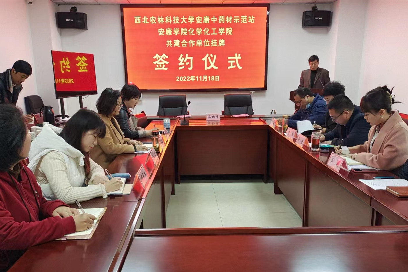 柳林、周自云代表双方签订了合作协议,余谦、董娟娥为合作单位揭牌。
