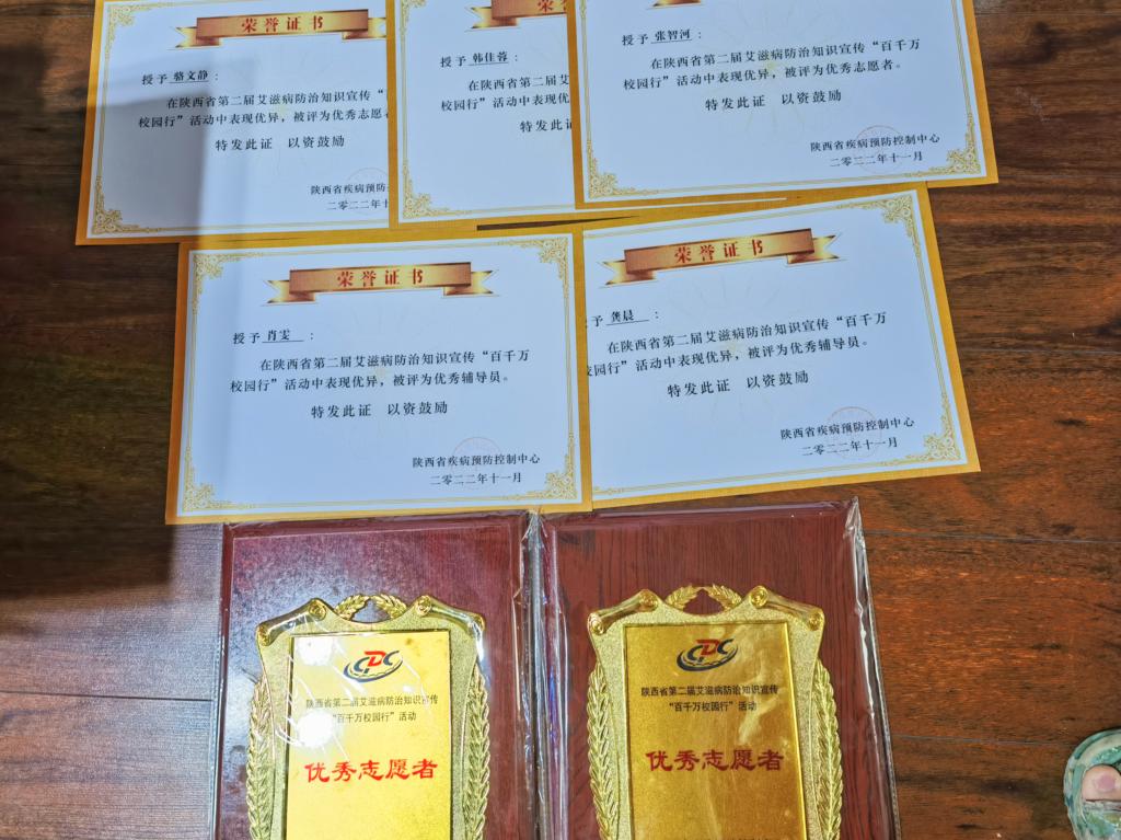 由陕西省卫生健康委员会、陕西省教育厅、陕西省疫病预防控制中心联合在全省普通高校开展的陕西省第二届艾滋病防治知识宣传“百千万校园行”活动中,开元官网再创佳绩,再次获荣艾滋病防治知识宣传“百千万校园行”活动优秀学校称号;开元官网教师志愿者龚晨、肖雯,学生志愿者张智河、骆文静、韩佳蓉获得“优秀个人”称号。
