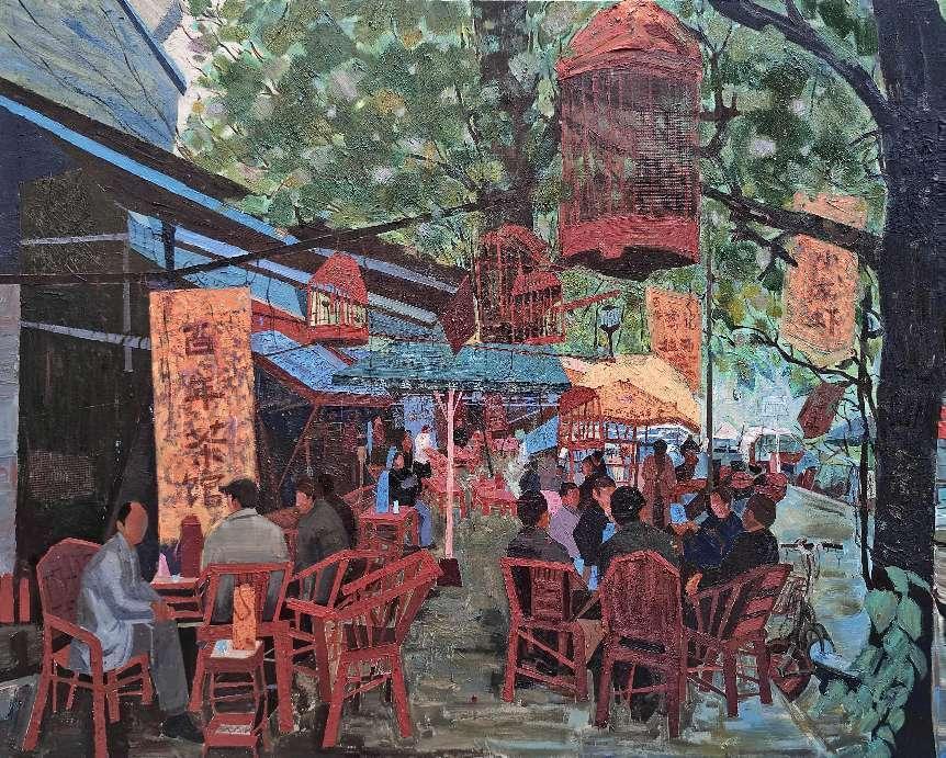 《老城故事——午后茶歇》油画 120x160cm 原春鸣