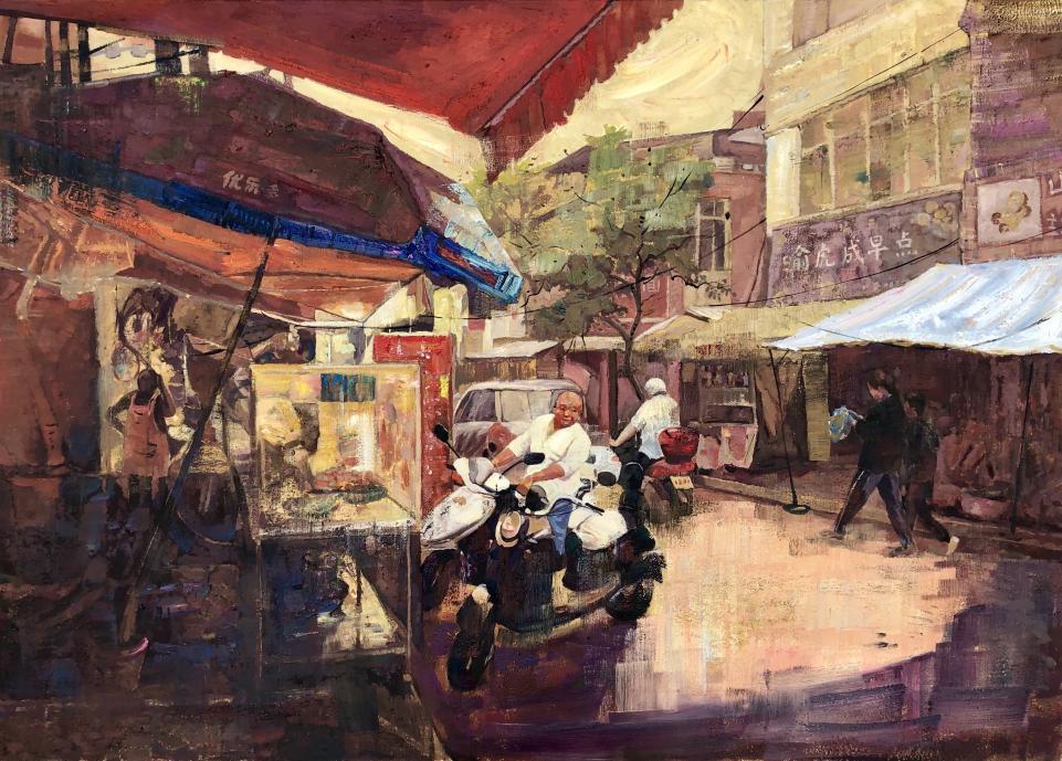 《幸福美食街之八》油画,120x150cm 原春鸣