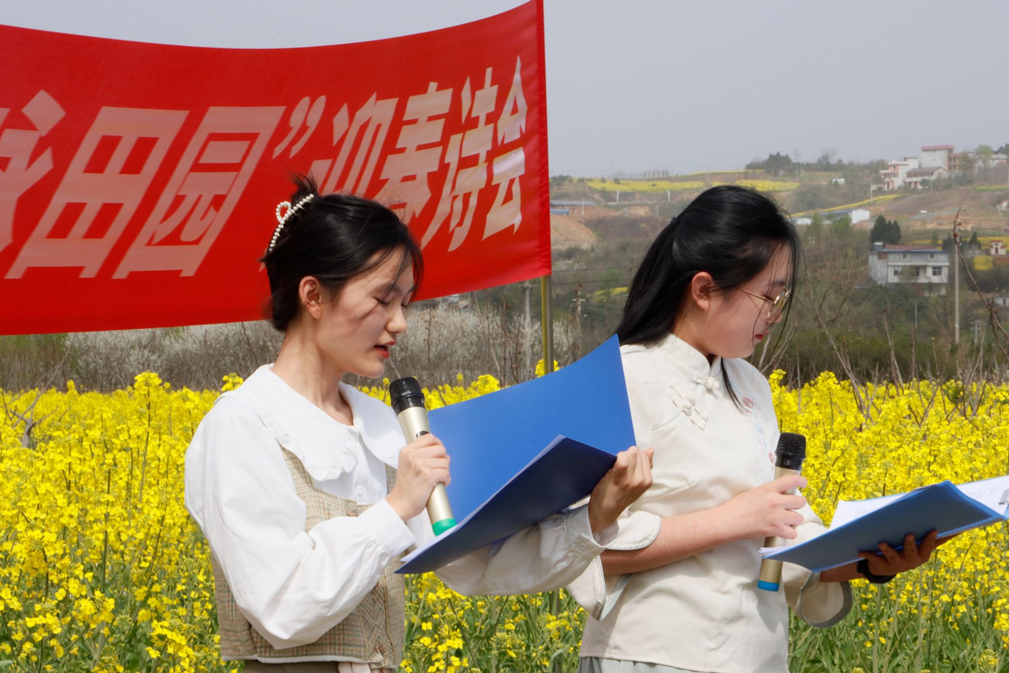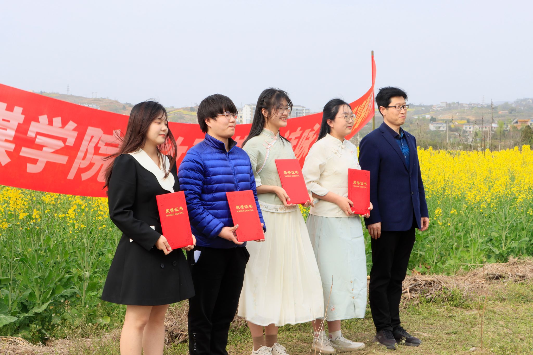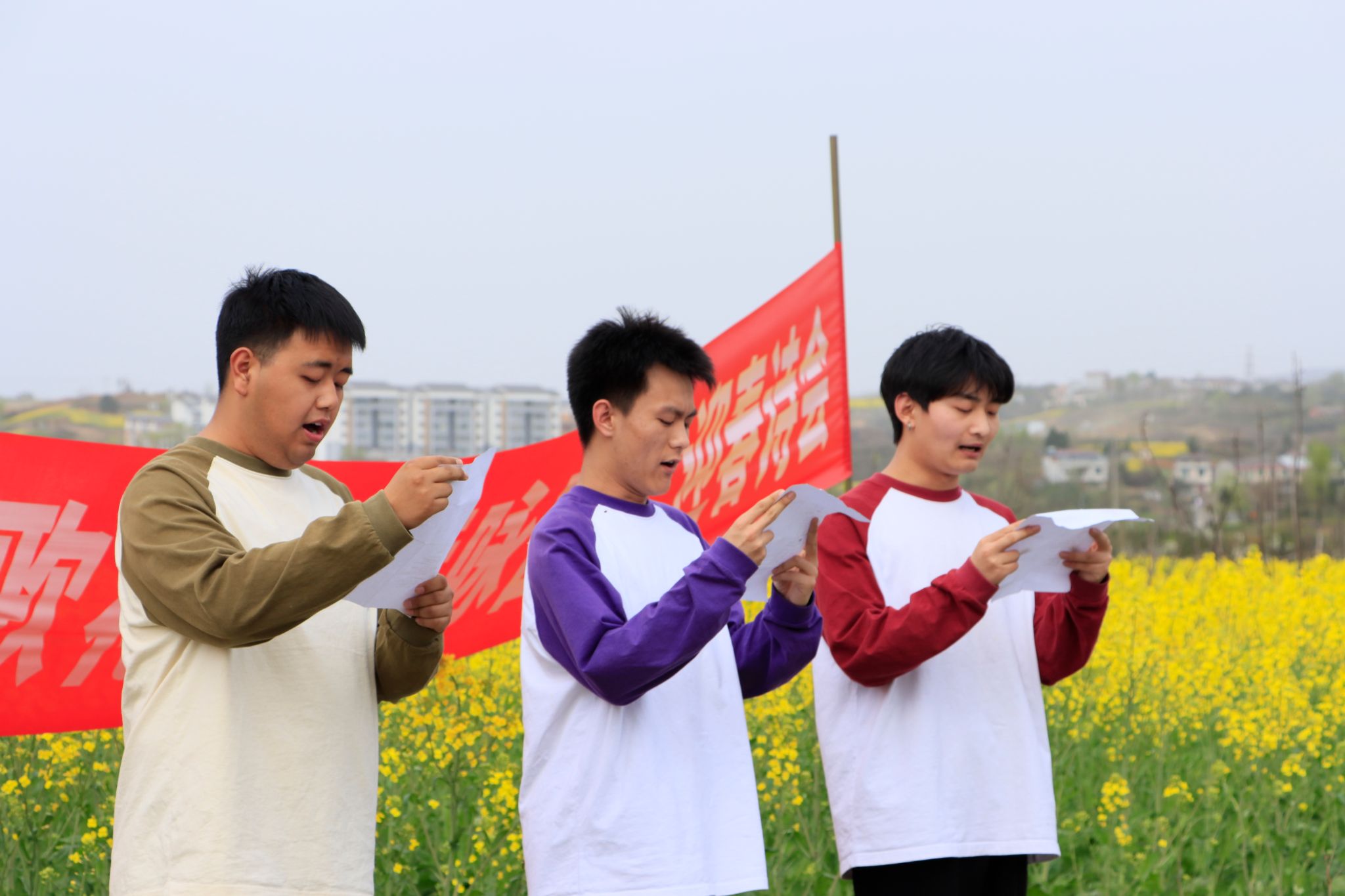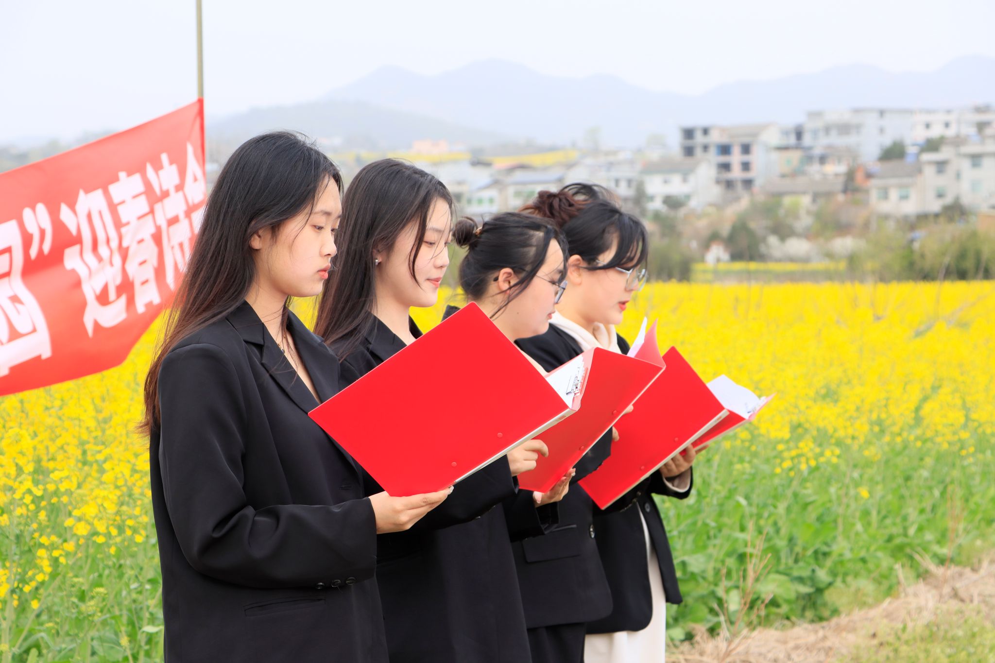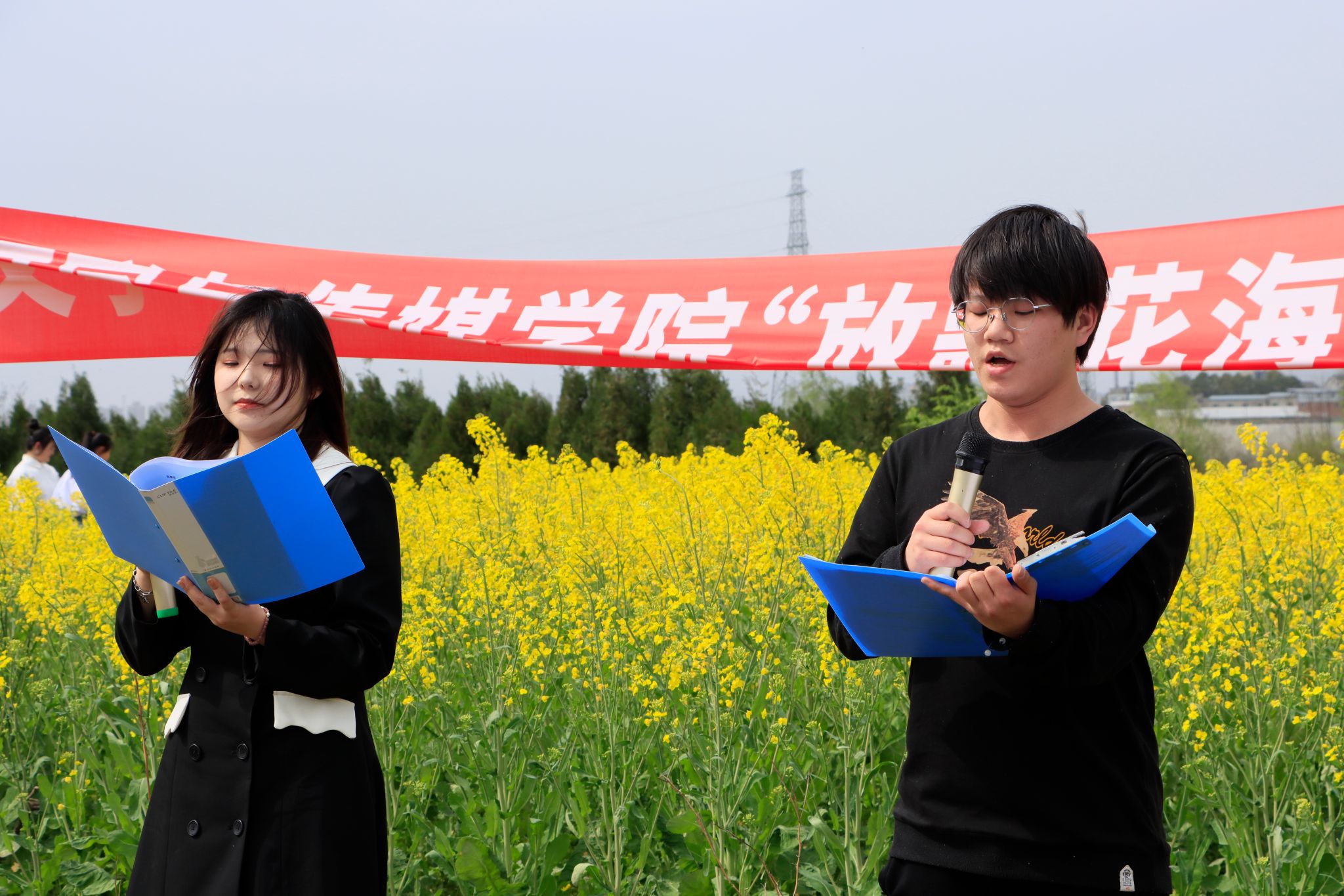 近日,开元官网文学与传媒学院在张滩镇黄洋河畔油菜花田顺利举办了2023年迎春诗会。文传学院党总支书记芦伟、副书记杨海蓉及部分教师代表席了本次活动。活动由辅导员邹棠华组织,影视戏剧社承办,文传学院近70名学生参加了本次诗会。