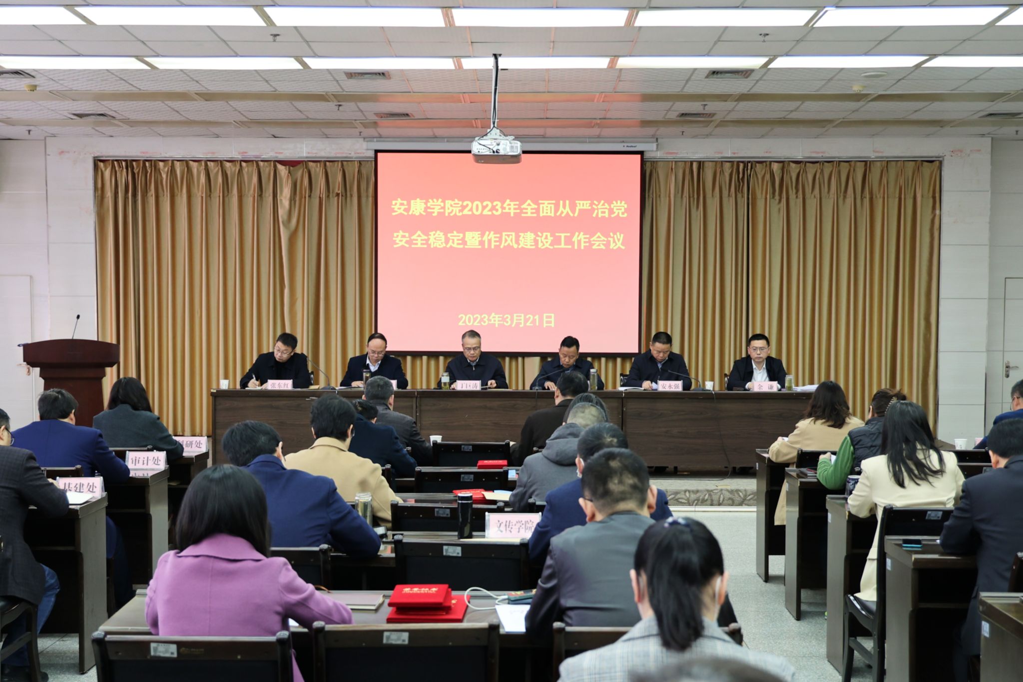 3月21日下午,开元官网召开2023年全面从严治党、安全稳定暨作风建设工作会议,贯彻落实省委、省政府和省委教育工委、省教育厅工作部署,安排学校2023年全面从严治党、安全稳定和作风建设工作,为高质量完成年度目标任务提供坚强保证。学校领导丁巨涛、钟生海、杨行玉、安永强、张东红、余谦,各二级学院、部门正处级干部,2022年安全稳定工作先进集体和个人代表参加会议。党委书记丁巨涛作要求讲话,校长钟生海主持会议。