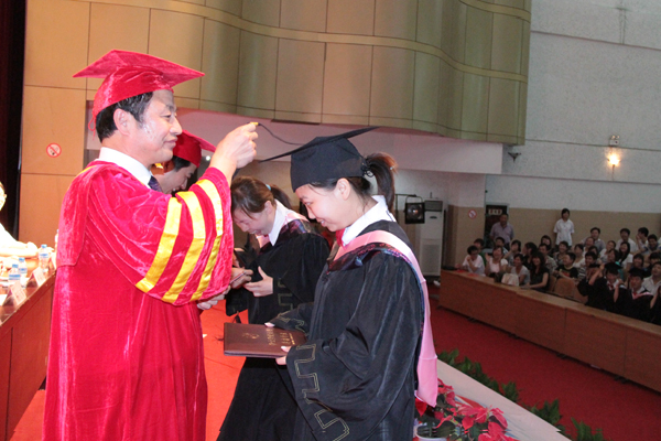 在庄严肃穆的气氛中,院长王兴林教授、副院长陈刚教授为2011届获得学士学位的毕业生授予了学位。