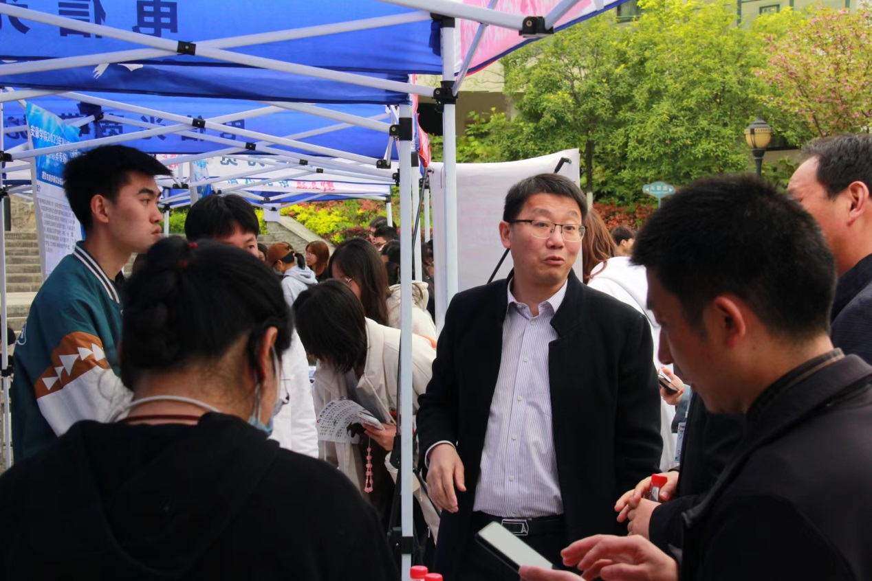 4月8日,KY开元集团官网2023届毕业生春季第五场(经管类专场)招聘会在江北校区举行,来自全省各地50多家优秀企业到会招聘人才,副校长张东红出席会议并致辞。