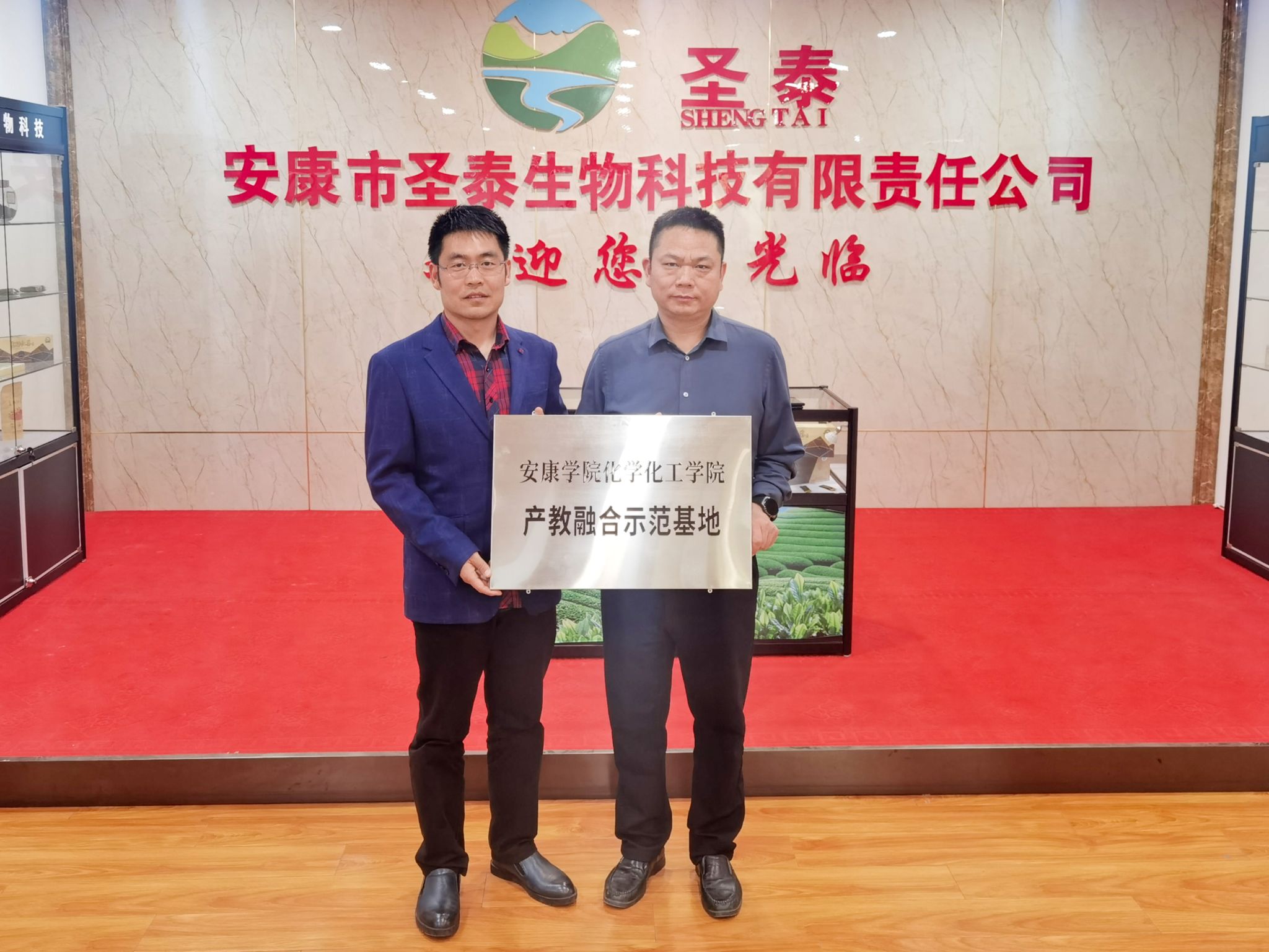 凝聚科技力量,助力产业发展,4月11日,化学化工学院党总支副书记、副院长袁光辉带领“化学赋能”科技团部分成员赴安康市圣泰生物科技有限公司进行科技服务对接活动,企业总经理宋兵出席活动。
