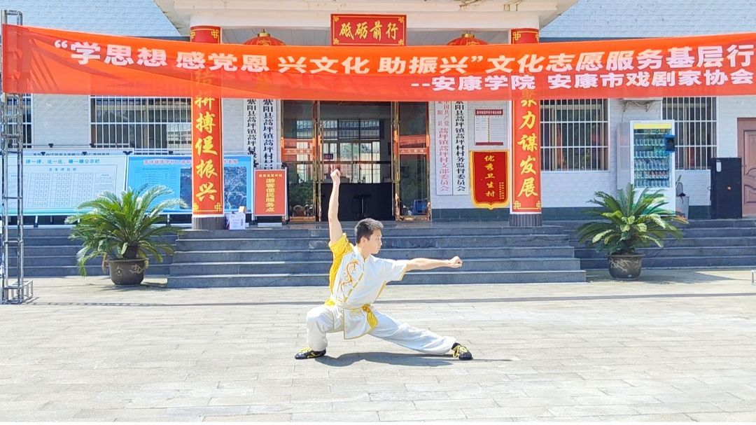 5月13日,开元官网文传学院师生文艺演出团队赴紫阳县蒿坪镇蒿坪村开展“学思想感党恩兴文化助振兴”文化志愿服务基层行活动。文传学院领导班子成员、蒿坪镇政府和蒿坪村领导以及安康市、紫阳县戏剧协会主要负责人等参加了本次活动。