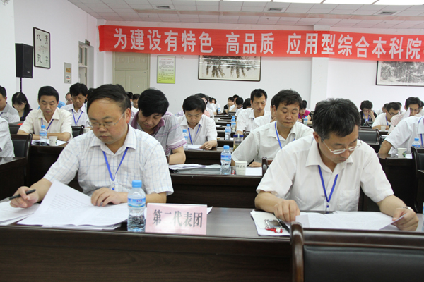杨涛同志代表学院党委作了题为《凝心聚力,艰苦创业,为建设有特色、高品质、应用型综合本科院校而努力奋斗》的工作报告。报告对过去六年的主要工作和经验进行了全面客观的总结。面对不断出现的新形势新挑战,学院党委始终坚持党的教育方针和社会主义办学方向,以科学发展观为指导,以学院中长期发展规划为引领,团结带领全体师生员工,解放思想,抢抓机遇,迎难而上,改革创新,走开放式发展道路,努力推进科学发展,各项工作都取得了显著成绩,学院改革与发展步入了一个崭新的时期。杨涛同时提醒大家,面对新的发展形势,我们必须正视存在的问题和不足,继续发扬优良的办学传统,以“二次创业”的精神,鼓舞士气,振奋精神,努力实现学院快速协调发展。