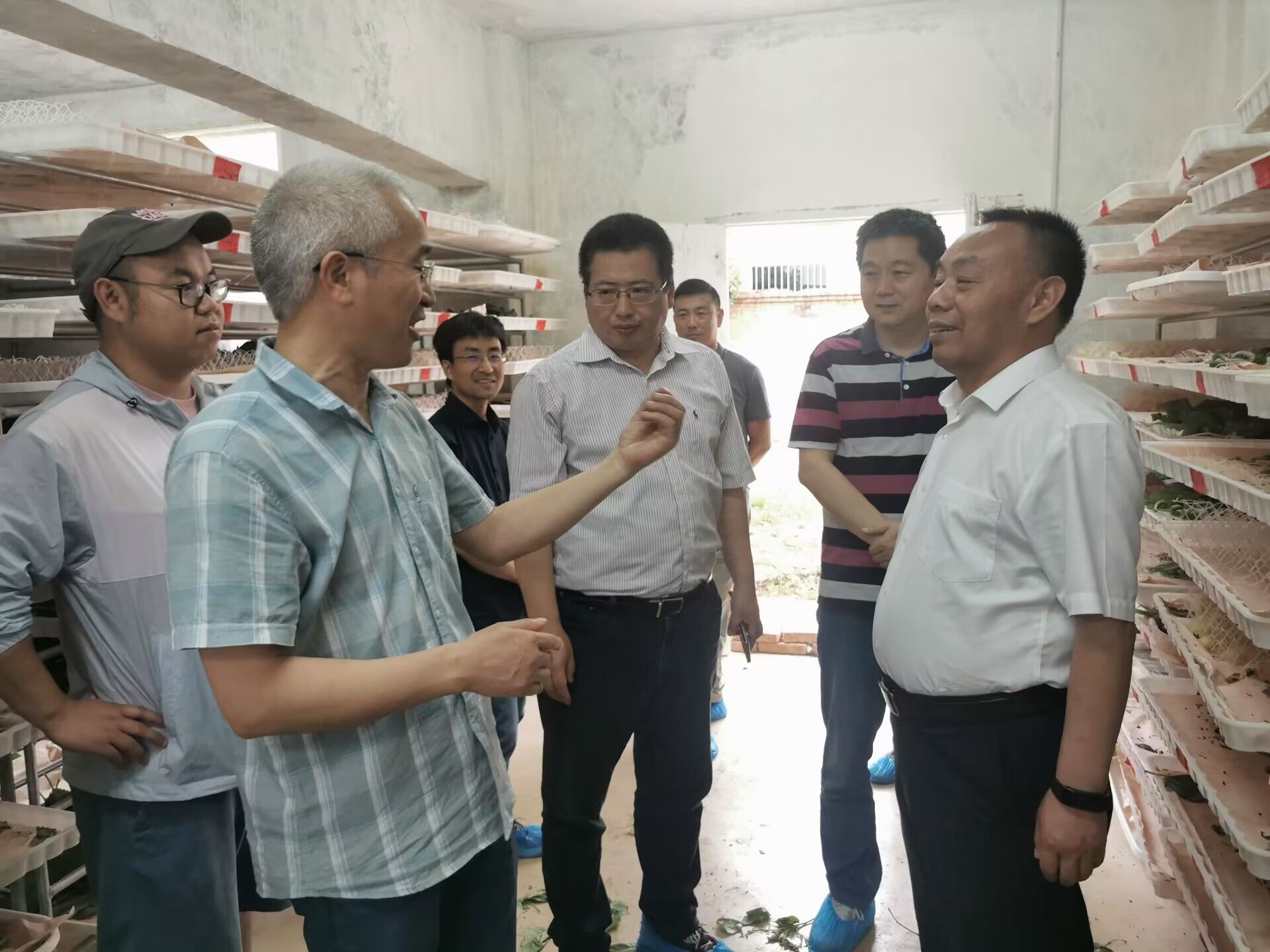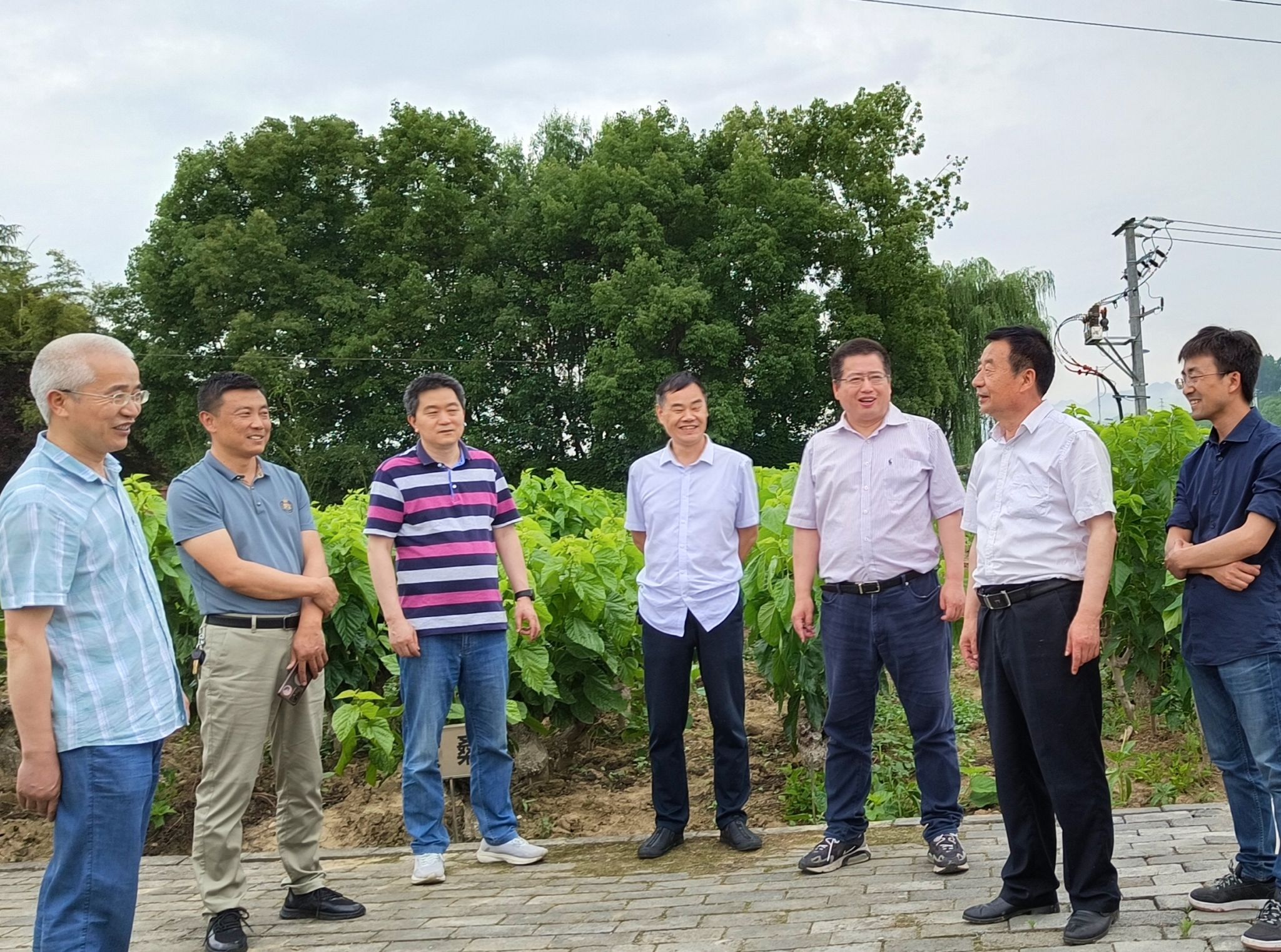 在蚕桑科研基地,潘国庆一行详细了解了野桑蚕种质资源保存、繁育与家蚕新品种选育、桑资源研究与利用等方面情况。
