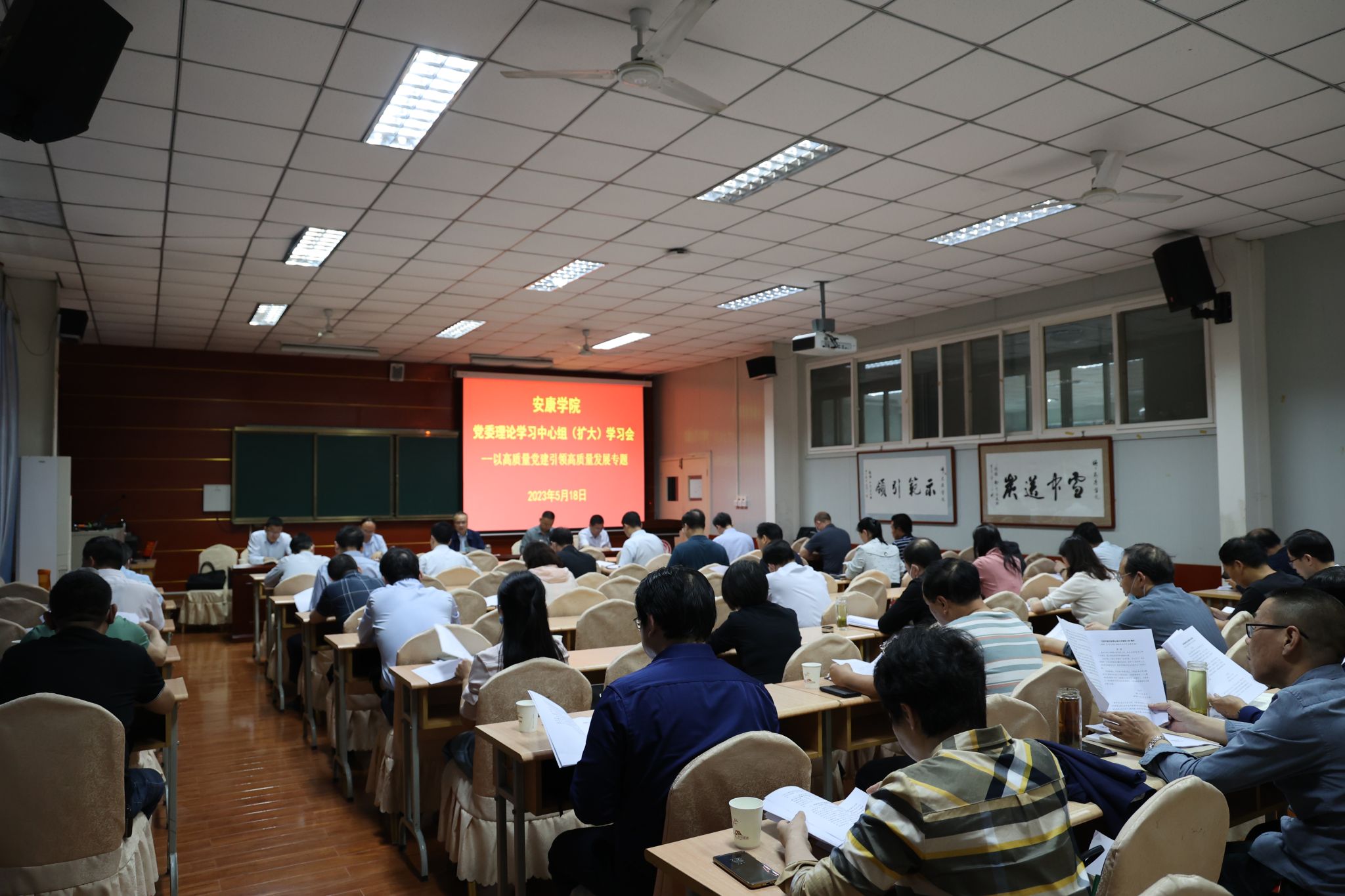 党委书记丁巨涛领学了习近平总书记致云南大学建校100周年的贺信、给中国农业大学科技小院的同学们回信;党委副书记杨行玉领学了5月17日习近平在听取陕西省委和省政府工作汇报时的重要讲话;党委副书记、纪委书记、监察专员安永强领学了省委书记赵一德关于党建工作的讲话;副校长张东红领学了“全国党建工作示范高校”案例;副校长余谦领学了“全国党建工作标杆院系”案例。