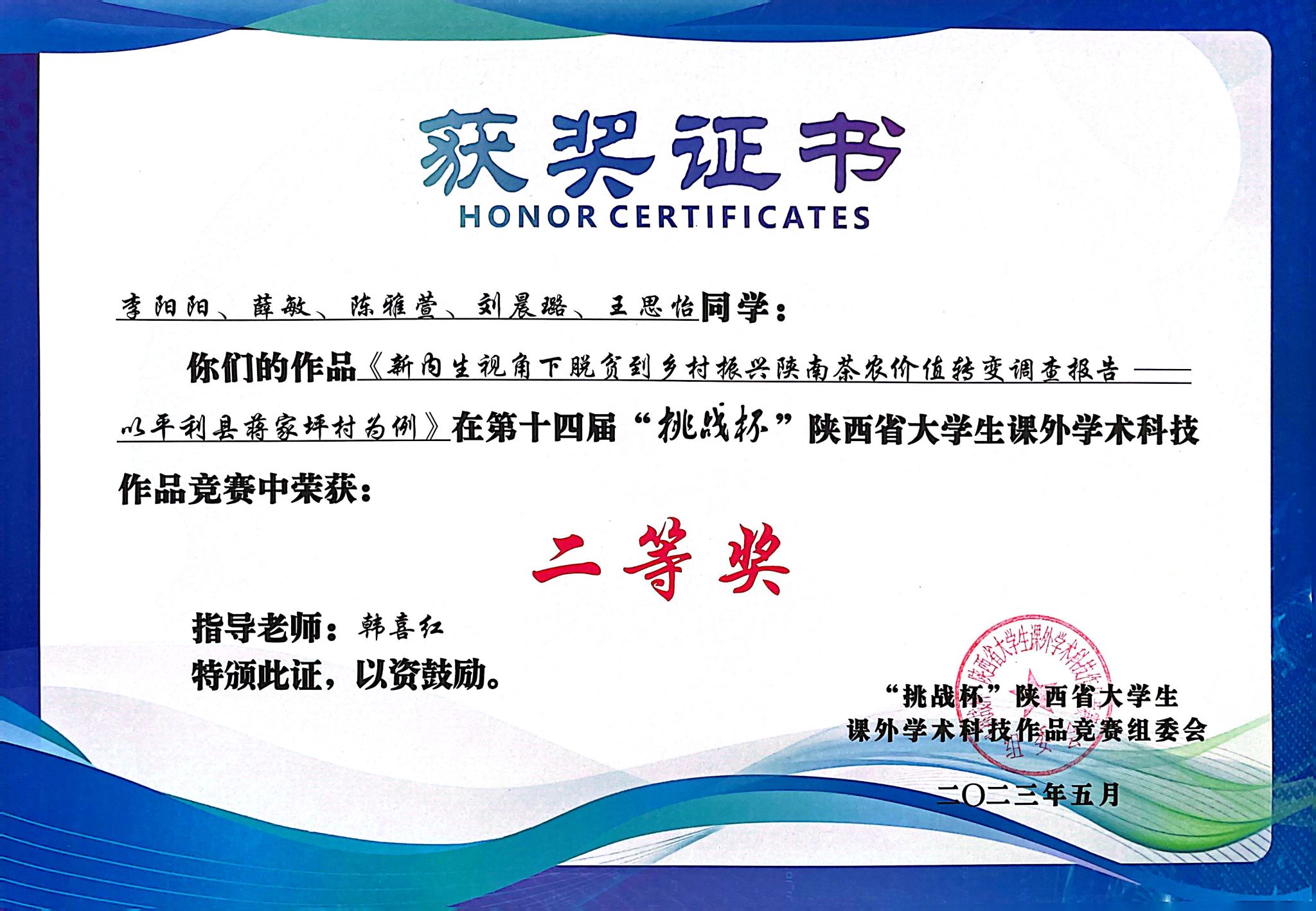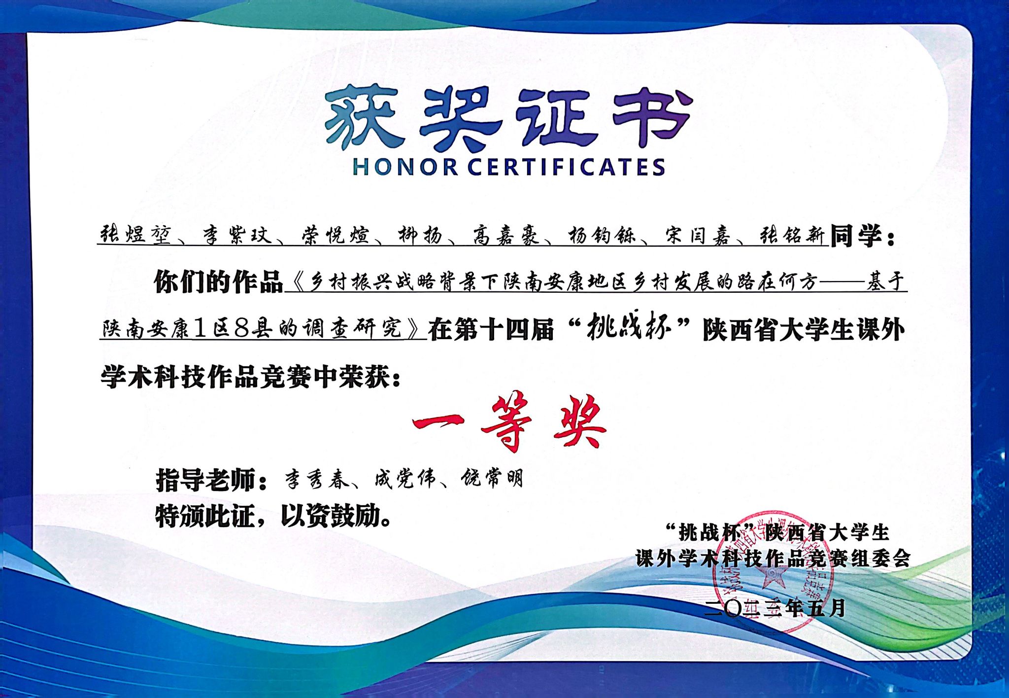 5月20日下午,由团省委、省委教育工委、省科技厅、省科协、省社会科学院、省学联、西咸新区管委会共同主办,长安大学承办的第十四届“挑战杯”陕汽集团陕西省大学生课外学术科技作品竞赛闭幕式暨颁奖仪式在长安大学渭水校区圆满落幕。开元官网参赛作品《乡村振兴战略背景下陕南安康地区乡村发展的路在何方——基于陕南安康1区8县的调查研究》荣获一等奖、《基层党建推进脱贫攻坚成果与乡村振兴有效衔接调查——以秦鲁两省五村为例》、《新内生视角下脱贫到乡村振兴陕南茶农价值转变调查报告——以平利县蒋家坪村为例》2件作品荣获二等奖。