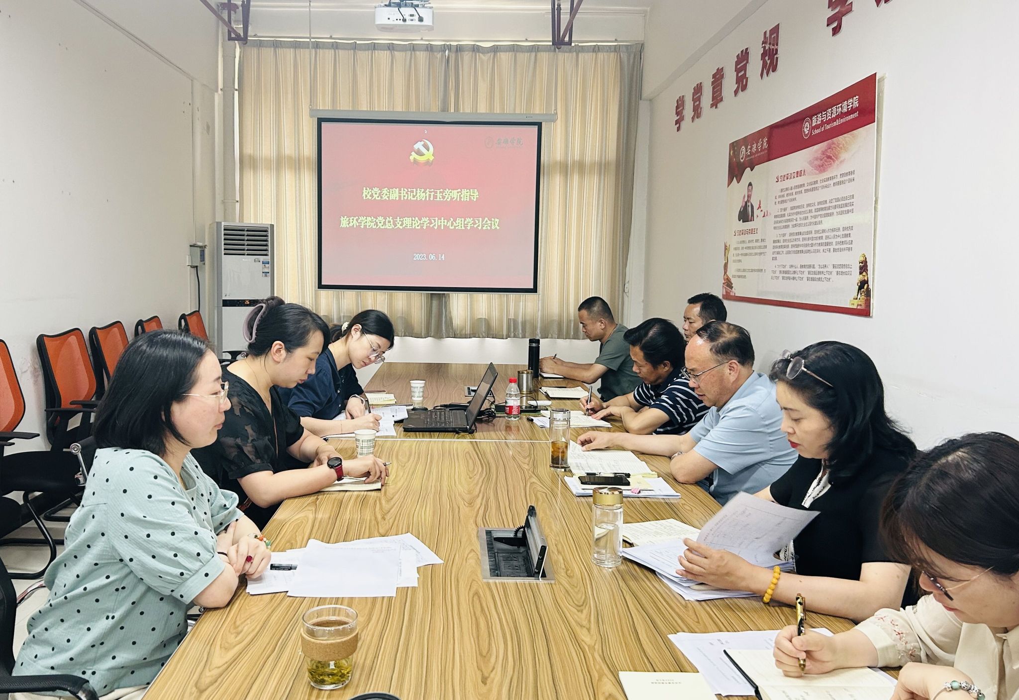 6月14日下午,旅环学院党总支在江北校区召开党总支理论学习中心组学习暨调研成果交流会,学校党委副书记杨行玉到会列席旁听、督查检查、工作指导。旅环学院中心组成员、各系主任参加了会议。