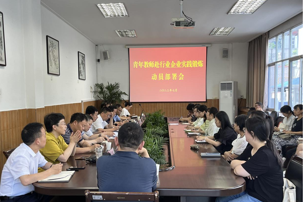 教务处副处长付争方宣读了此次赴行业企业实践锻炼的青年教师名单及实践锻炼单位;人事处处长杨哲解读了学校赴行业企业实践锻炼的制度和政策,并对此次工作进行了安排部署。