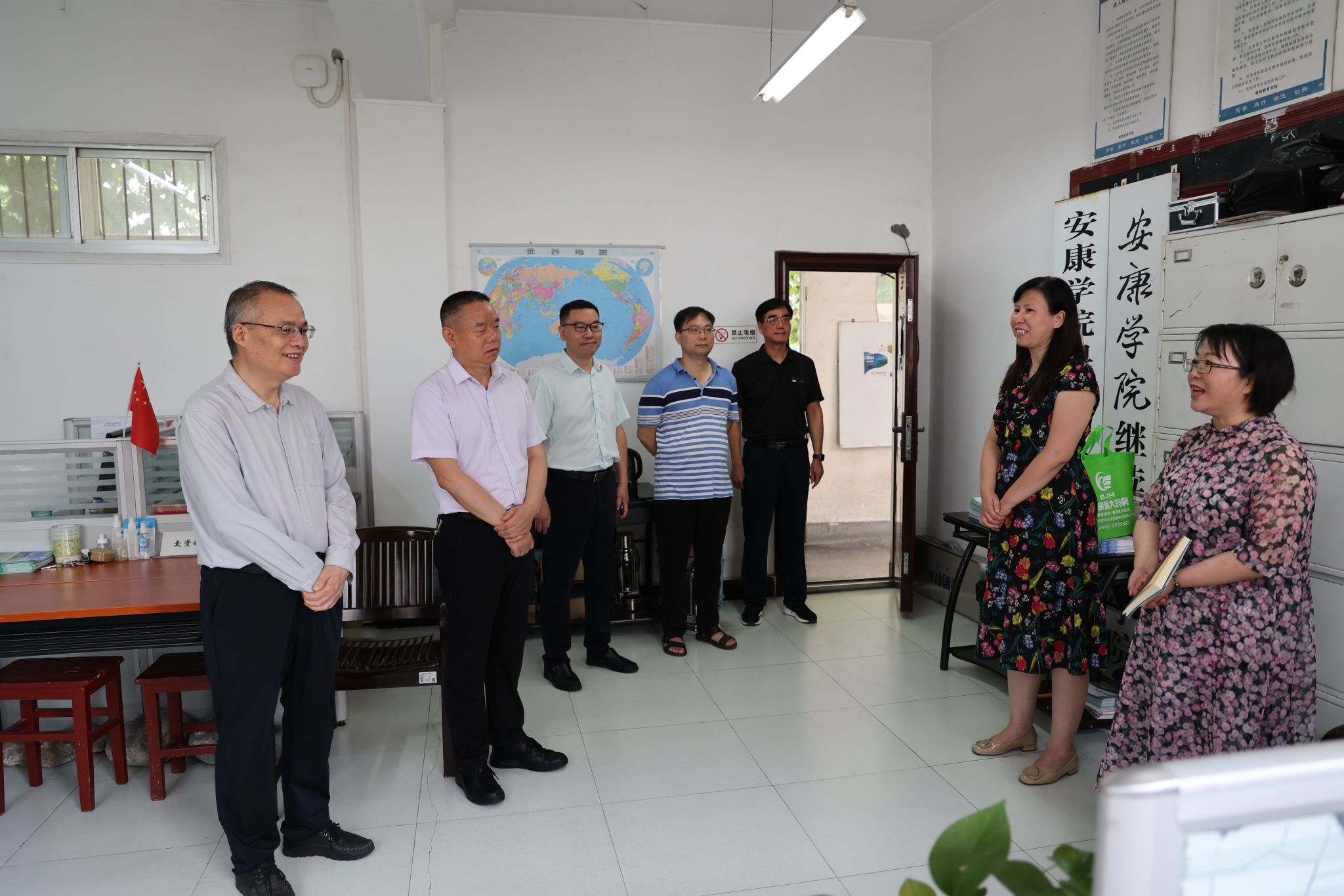 校领导一行先后走访了学工部、国资处、人事处、信息化处、后勤处、教务处、学报编辑部、保卫处、继续教育学院、招就处、蚕桑重点实验室、图书馆、基建处等地,听取了相关负责人暑期工作汇报,与坚守岗位的工作人员进行亲切交谈,代表学校对大家的辛勤付出表示感谢,并为他们送上了慰问品。