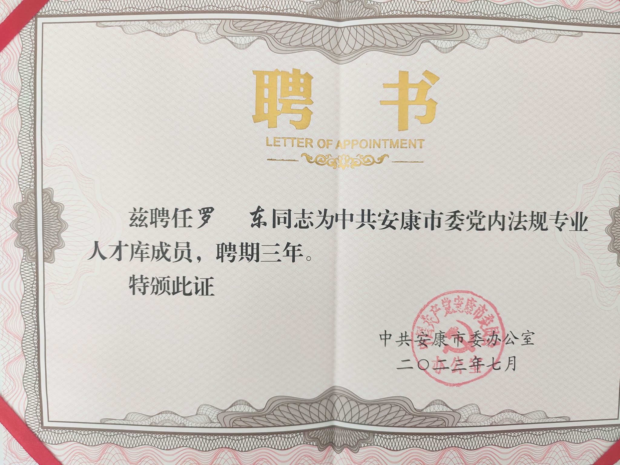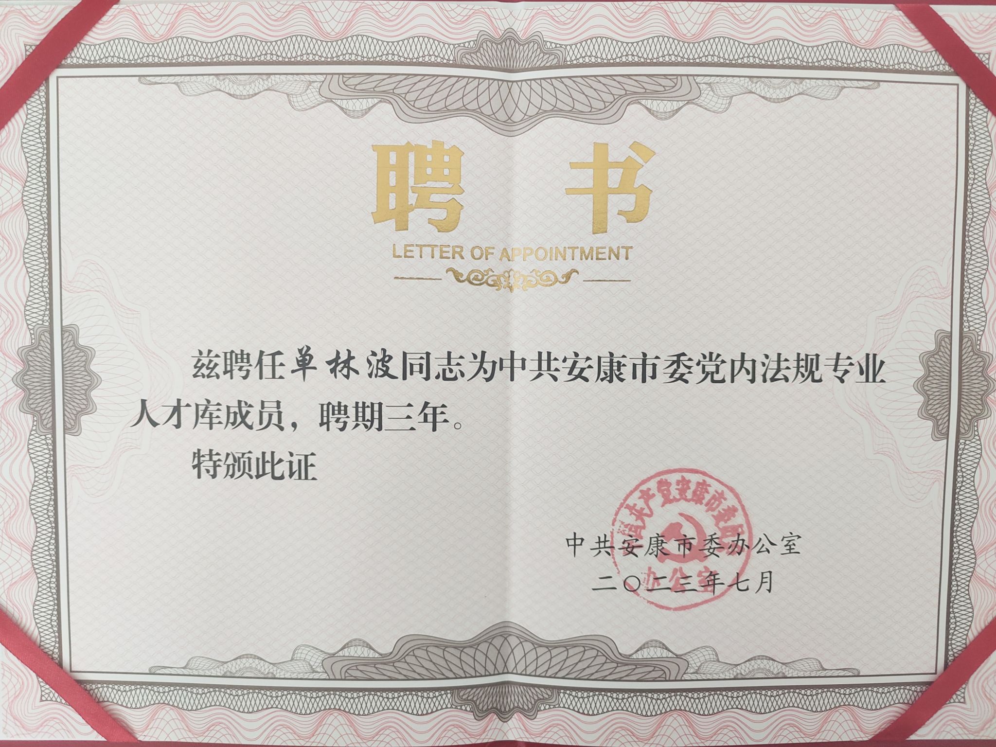 近日,中国共产党安康市委员会办公室发文并举行仪式,聘请开元官网教师单林波、罗东为安康市委党内法规专业人才库成员。
