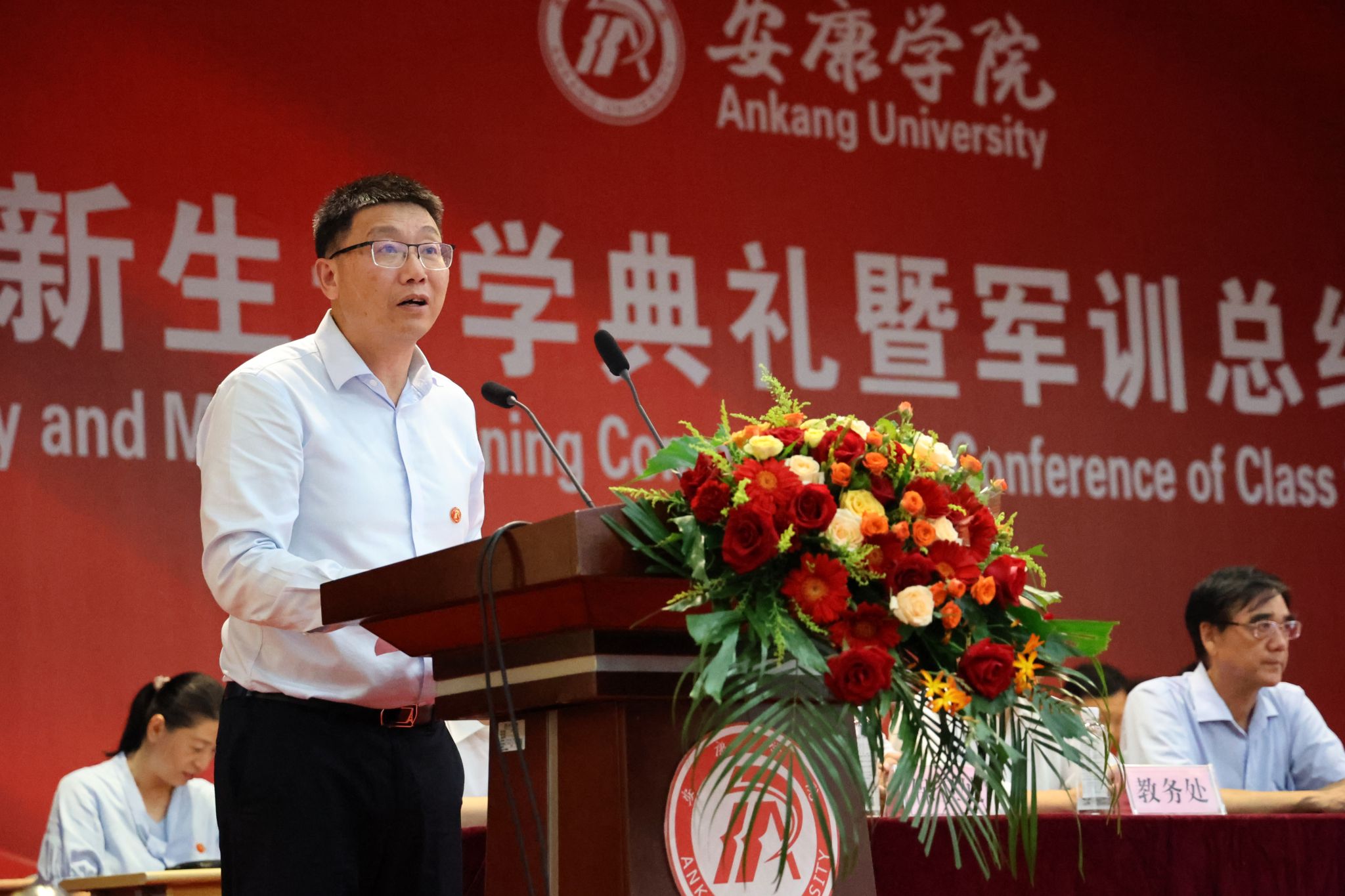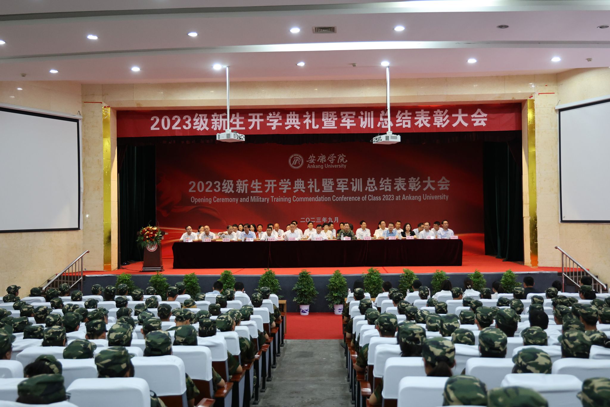 9月11日,开元官网2023级新生开学典礼暨军训总结表彰大会在江南校区大礼堂隆重举行。学校校长钟生海,党委副书记、纪委书记、监察专员安永强,副校长张东红,武警安康支队中校副政治委员马冠群,各二级学院院长、党总支书记、相关职能部门负责人等出席大会,大会由张东红主持。