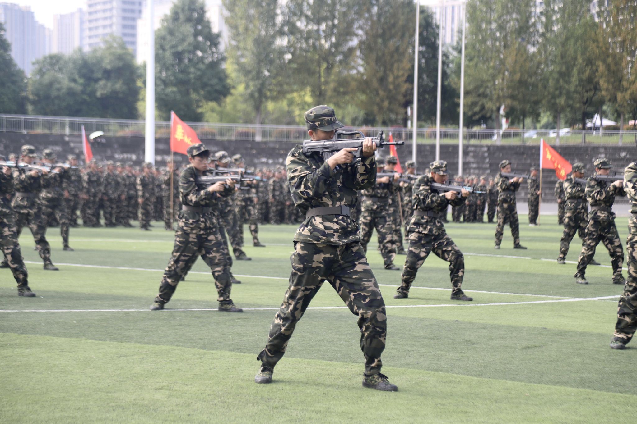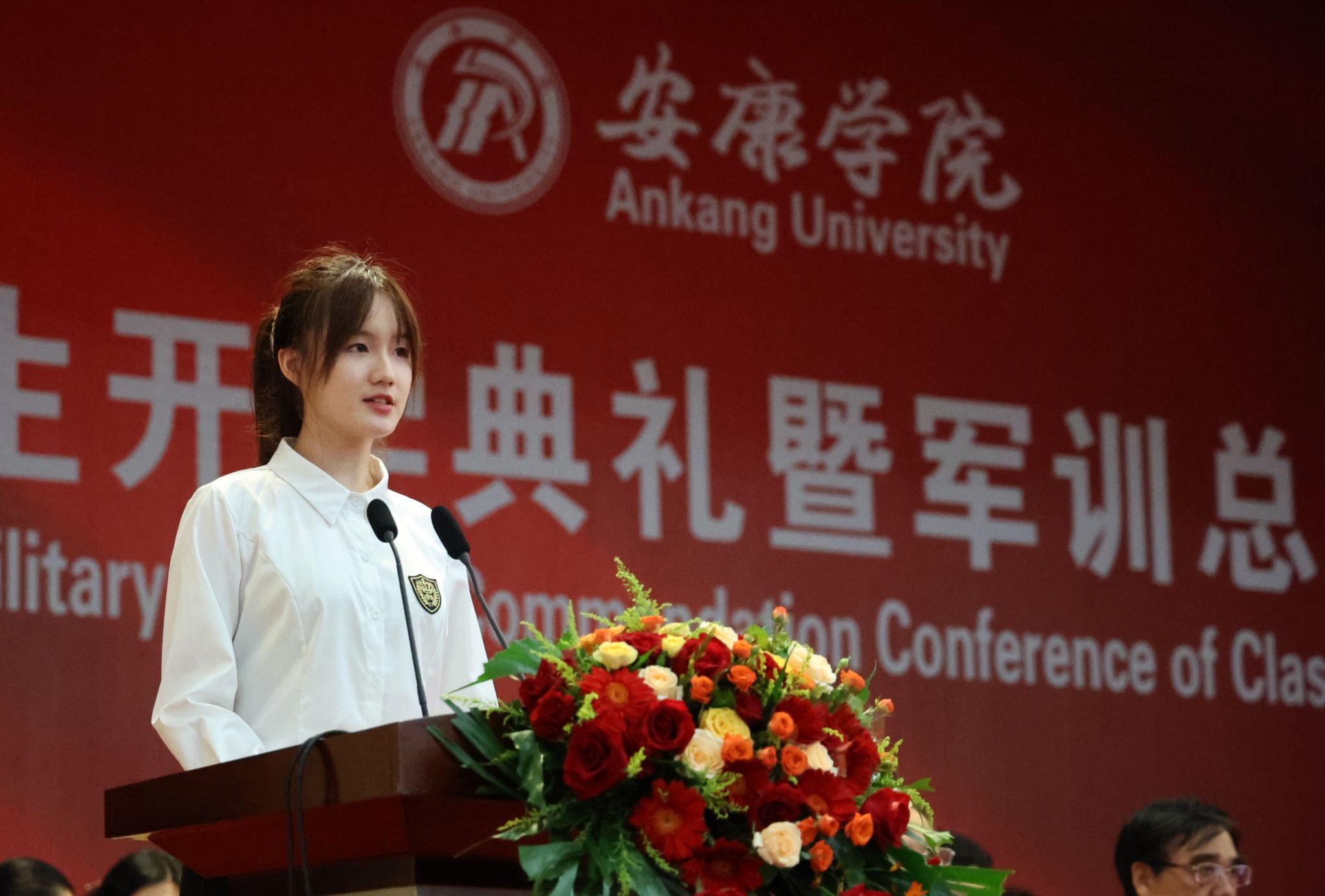 在庄严的国歌声中,大会拉开帷幕。会上,安永强宣读了表彰决定。13个连队被评为“军训先进集体”,13名辅导员被评为“优秀指导员”,89名学生被评为“军训先进个人”。