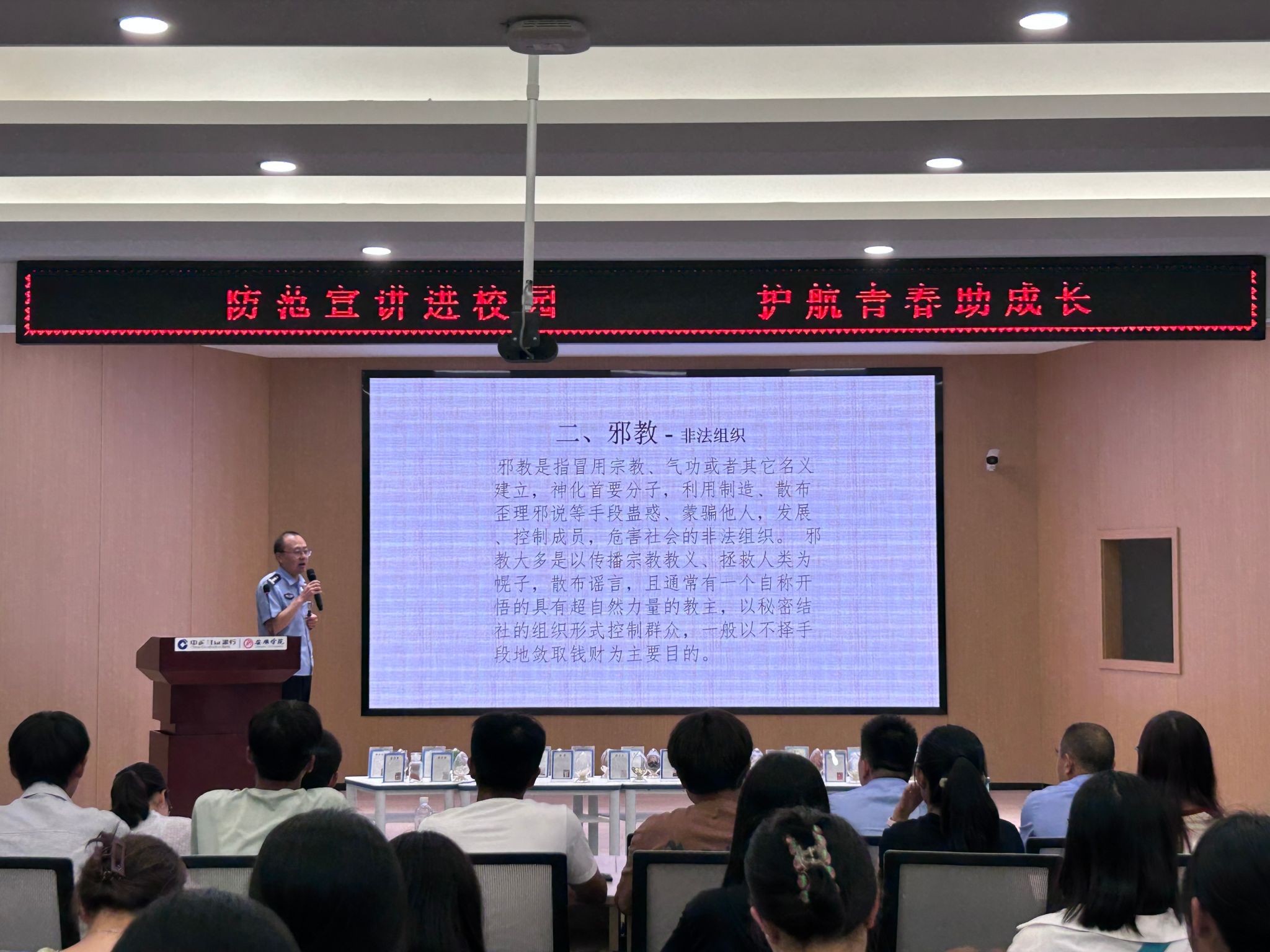 活动中,民警们采取PPT授课、发放宣传手册、播放警示教育片、讲解真实案例、观摩毒品仿真模型等方式,为学生们生动、详细地普及了反诈骗安全知识、邪教本质以及毒品的危害,引导学生们提高法律意识及自我防范意识,增强辨别是非的能力,自觉抵制不良行为,树立正确的世界观、人生观和价值观。
