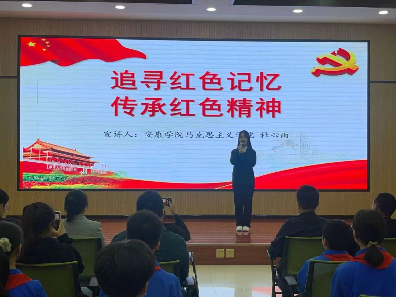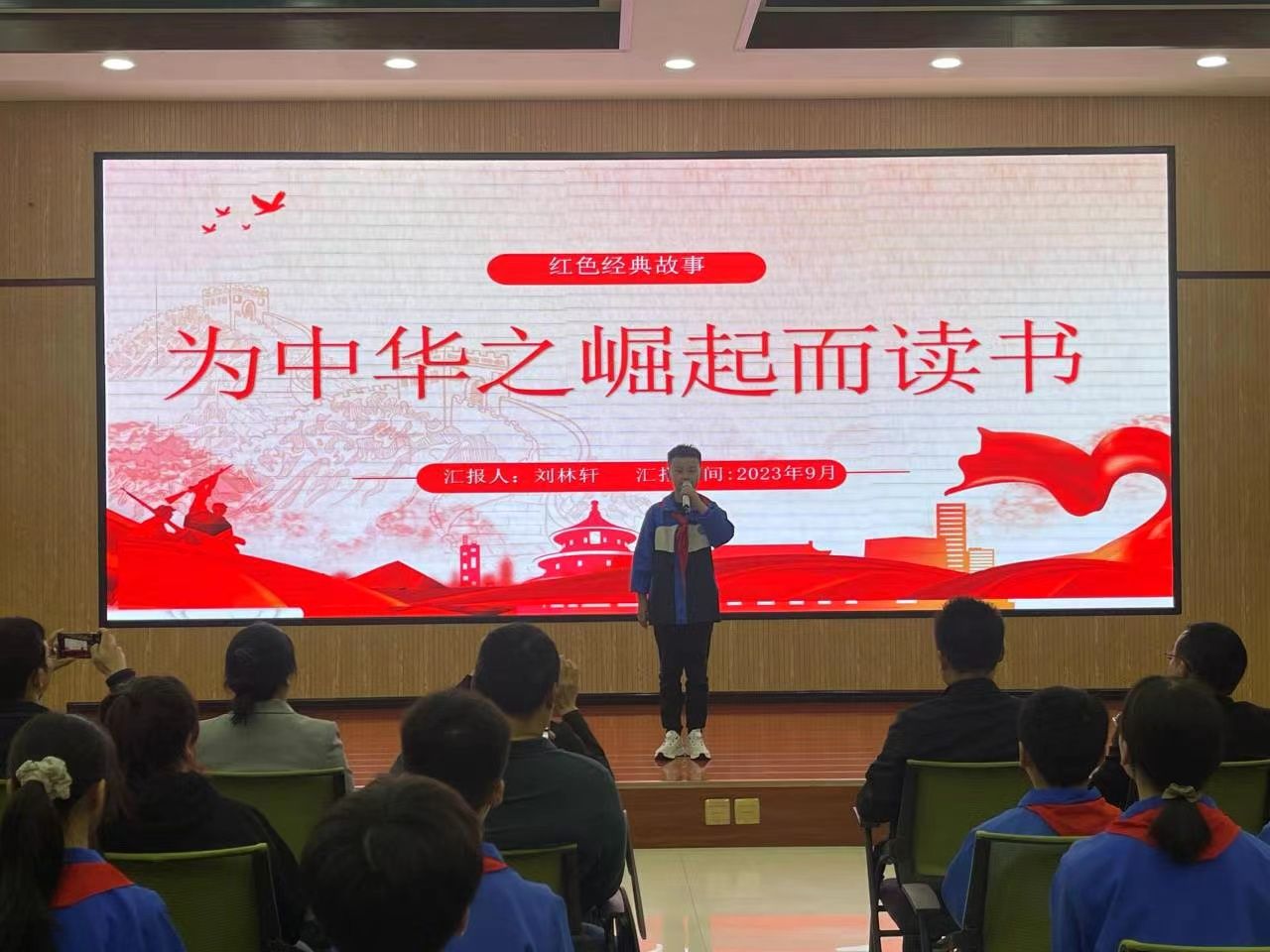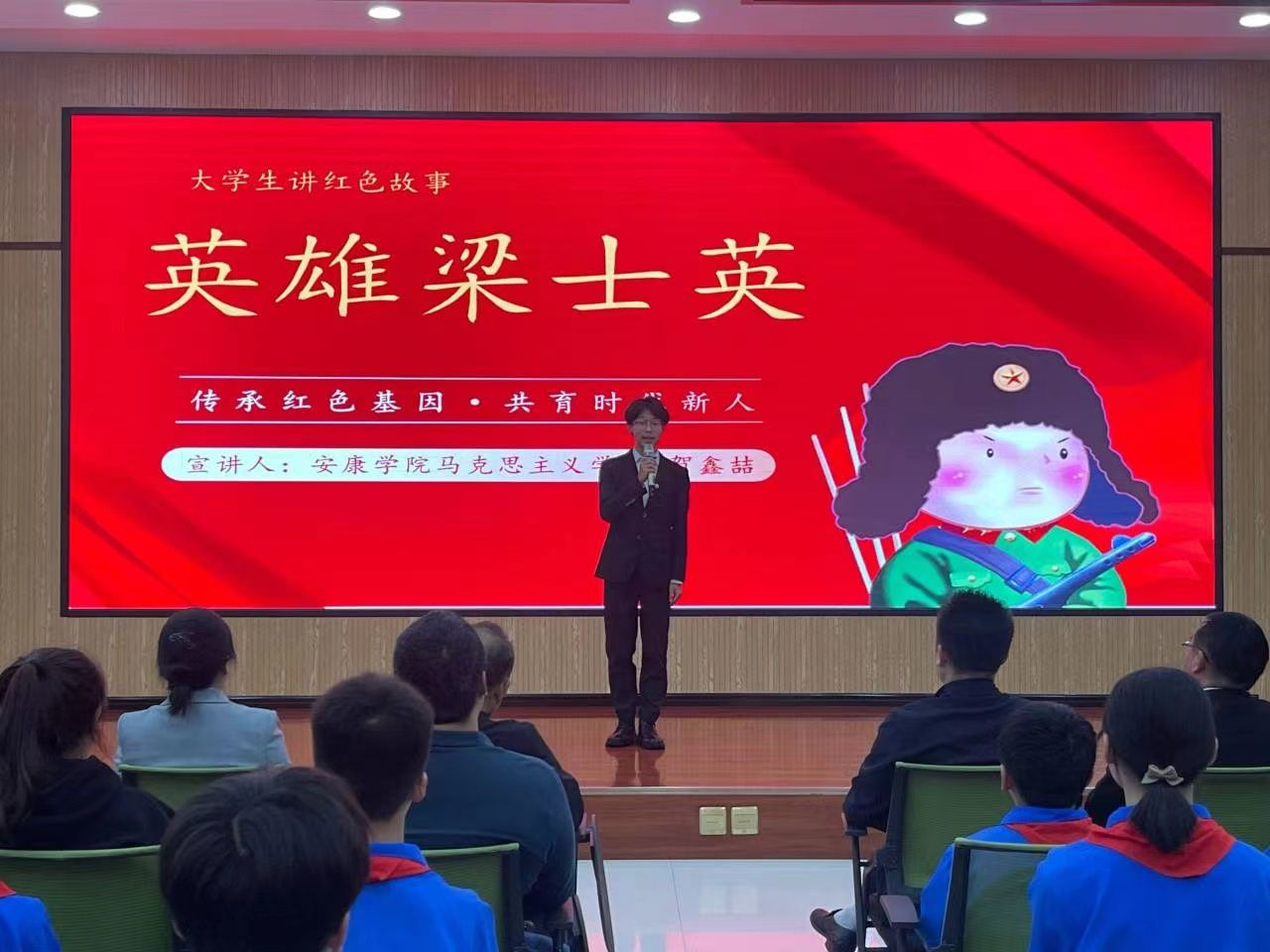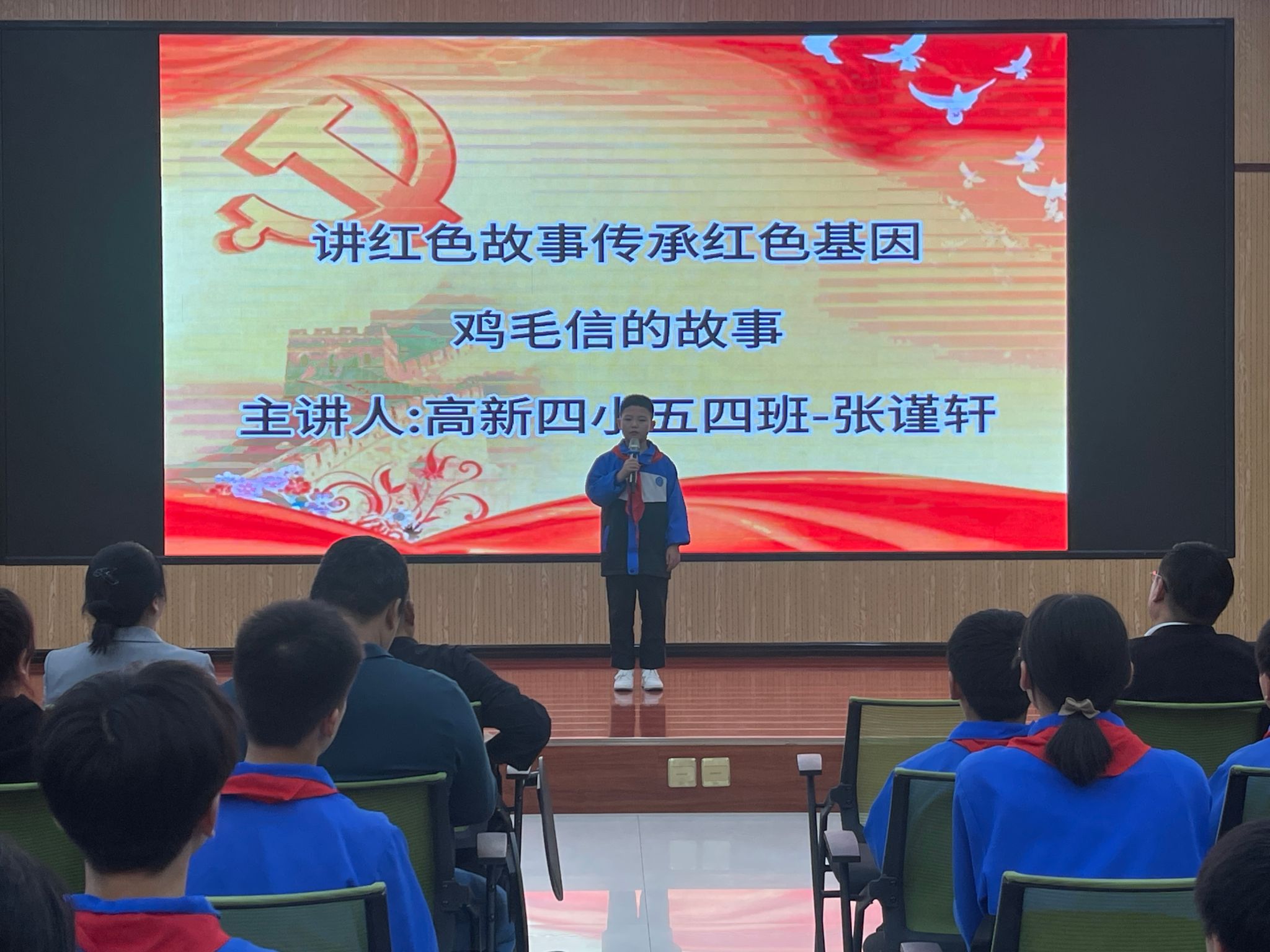在红色故事分享环节里,高新四小五(四)班学生张谨轩、刘林轩分享了“鸡毛信的故事”“为中华之崛起而读书”,开元官网思想政治教育专业学生贺鑫喆、杜心雨分享了“英雄梁士英”“一支钢笔背后的红色记忆”,大家从一个个红色故事的讲述中追溯红色血脉,重温峥嵘岁月,感悟信仰之源。随后,全体师生共同朗诵诗歌《我们爱祖国》,共庆祖国生日,传承红色基因,争做时代新人。