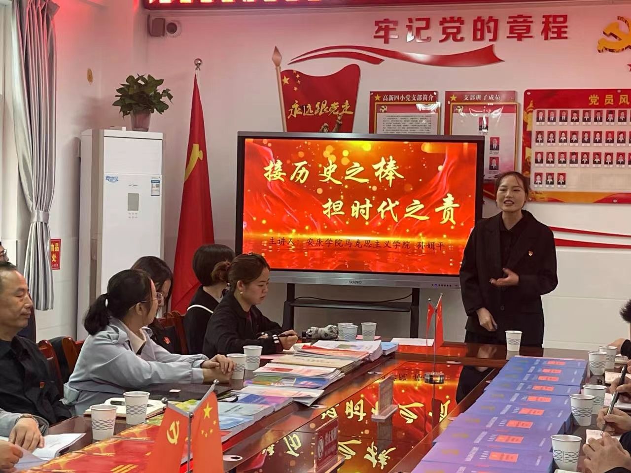 在主题党课环节,张平德结合高新四小的党建工作,带领大家进一步学习领会党的二十大精神和习近平新时代中国特色社会主义思想,为大家讲授了一堂生动精彩的党课。开元官网马克思主义学院青年教师代表孙娟平以《接历史之棒,担时代之责》为题做了专题党课,激励党员师生坚定理想信念,振奋精神,练就过硬本领,做有理想、敢担当、能吃苦、肯奋斗的新时代好青年。