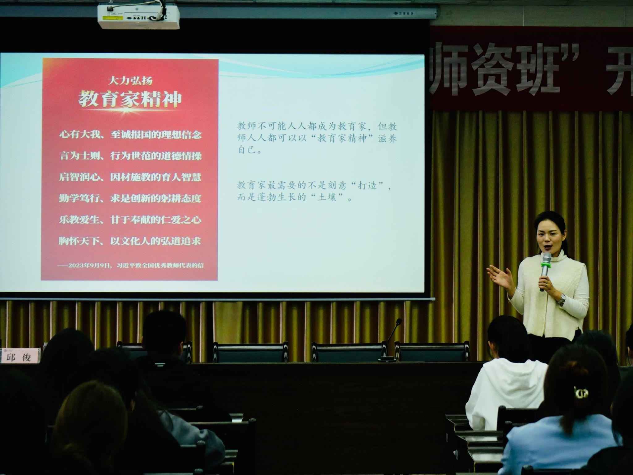 仪式结束后,陕西省教学名师、基础教育领军人才邱俊为第三届“中学语文卓越师资班”师生作了“教师最好的精神长相”首场学术讲座。