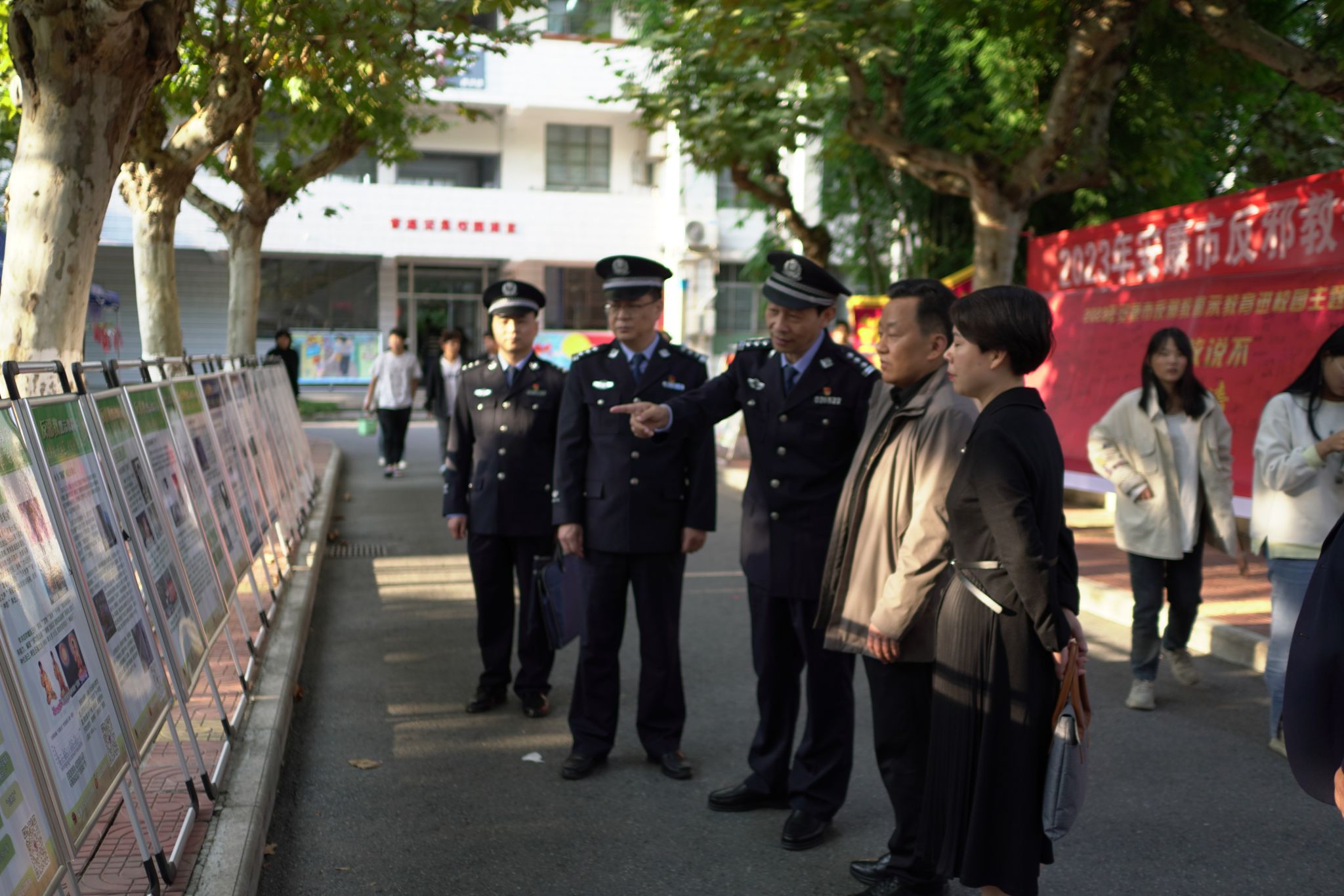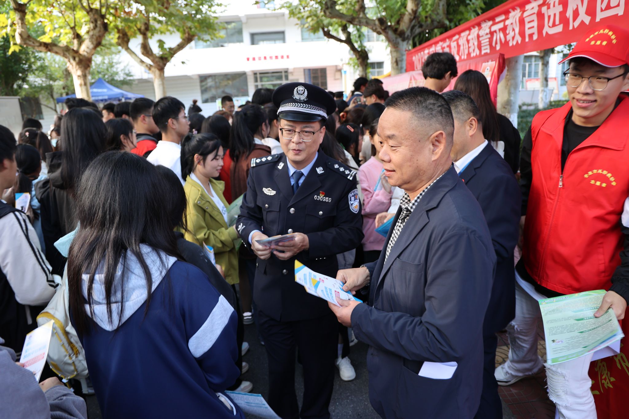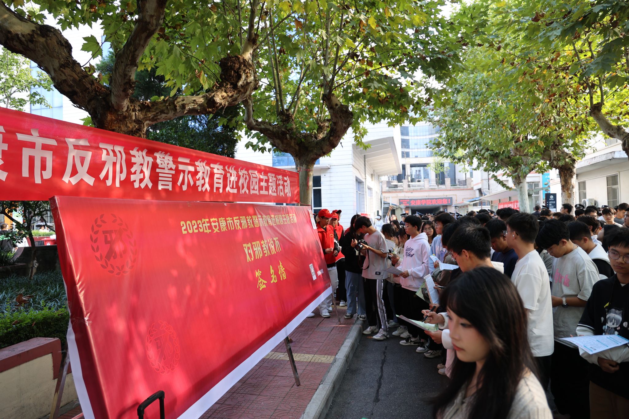 活动分集中宣传、启动仪式、宣讲活动三个阶段进行。在集中宣传阶段,现场通过悬挂标语、设置展板、发放宣传手册、现场讲解、互动问答等多种形式营造浓厚反邪教氛围。校长钟生海,党委副书记、纪委书记安永强和相关部门负责人一同参观展板,并在“对邪教说不”签名墙上签字留念。