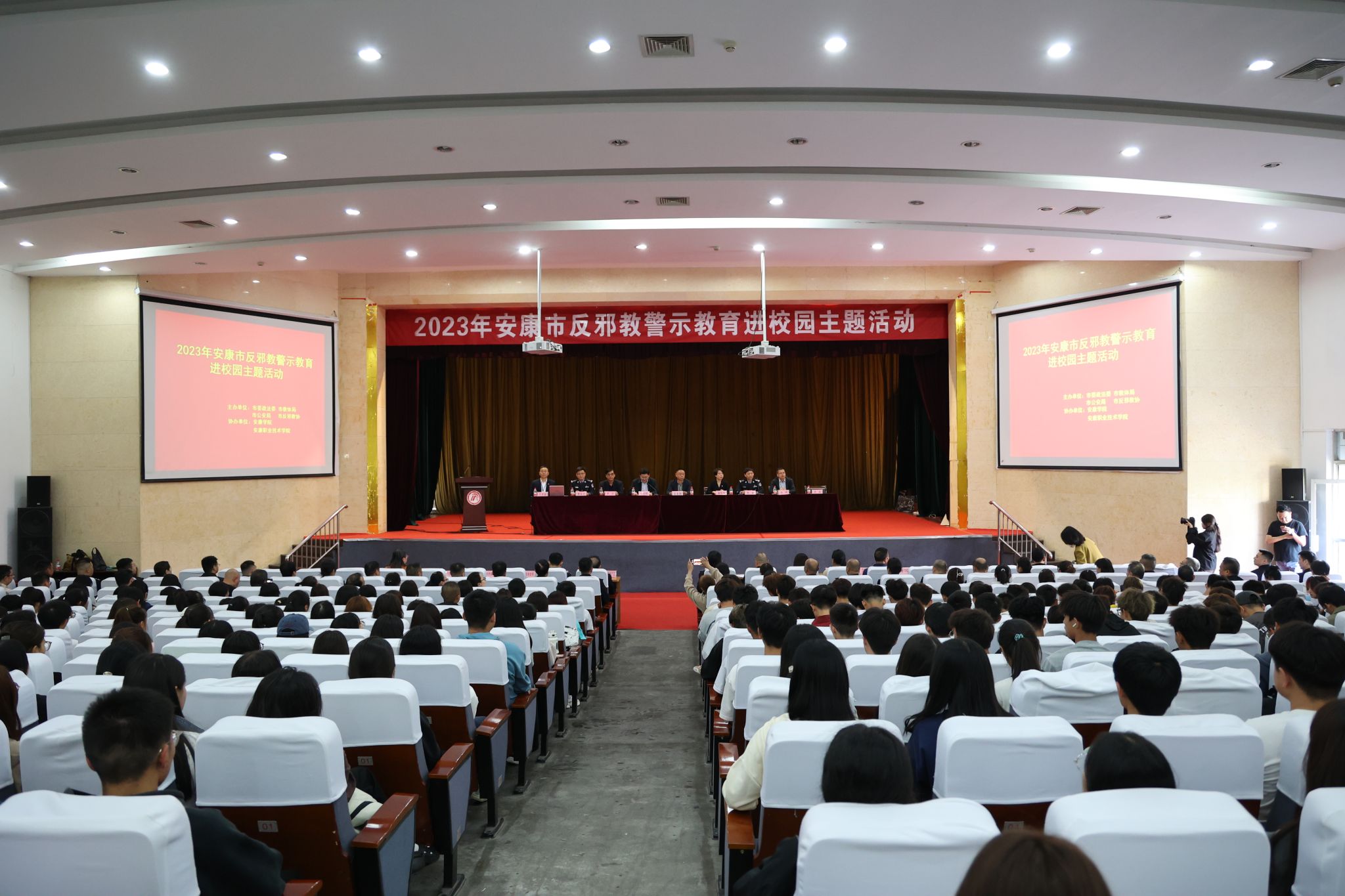 10月13日下午,“全市反邪教警示教育进校园主题活动”在开元官网举行。安康市委政法委、市教体局、市公安局和市反邪教协会、KY开元集团官网、安康职业技术学院相关负责同志、公安干警代表,育才社区、北门社区群众代表、市反邪教协会会员代表和师生代表共计700余人参加活动。