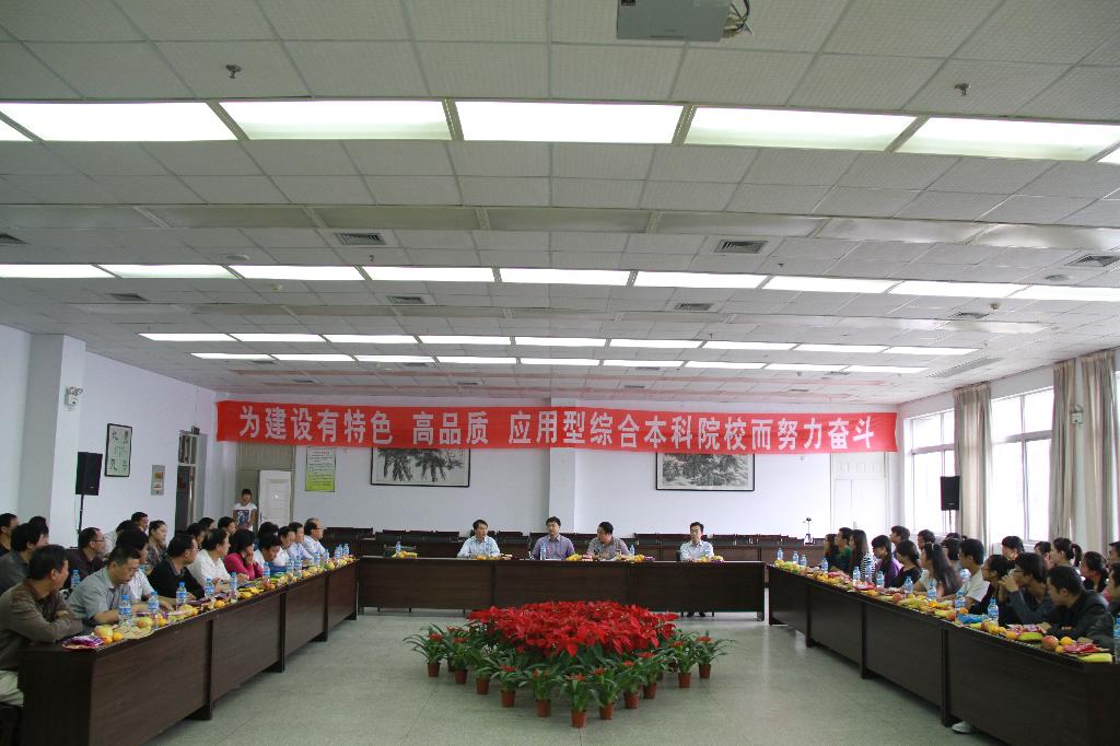 杨涛指出,过去一年里,在全院教职工的共同努力下,学院大力实施质量工程,聚人才,强基础,抓内涵,重建设,创特色,使得学院在党建、教学、科研和内部管理体制改革方面都取得了可喜的成绩。教学改革继续深化,学科专业建设不断加强,教学评建全面推进,第二批申请学士学位授权专业顺利通过省学位办评审;教师队伍建设进展顺利,实施青年教师综合素质提升工程成效明显;科技提升工程深入推进,上半年获得7项省部级以上科研立项,实现了国家自然科学项目立项“零”的突破;学生参加全国、全省各类科技竞赛成绩突出;本科毕业生就业率达90.52%,2011级新生综合报到率达到93.89%,本科生报到率高达95.1%,在校生人数达到9449人;内部管理体制改革稳步推进,各项管理进一步规范;新校区建设一期工程全面展开,学院各项事业持续稳步发展。