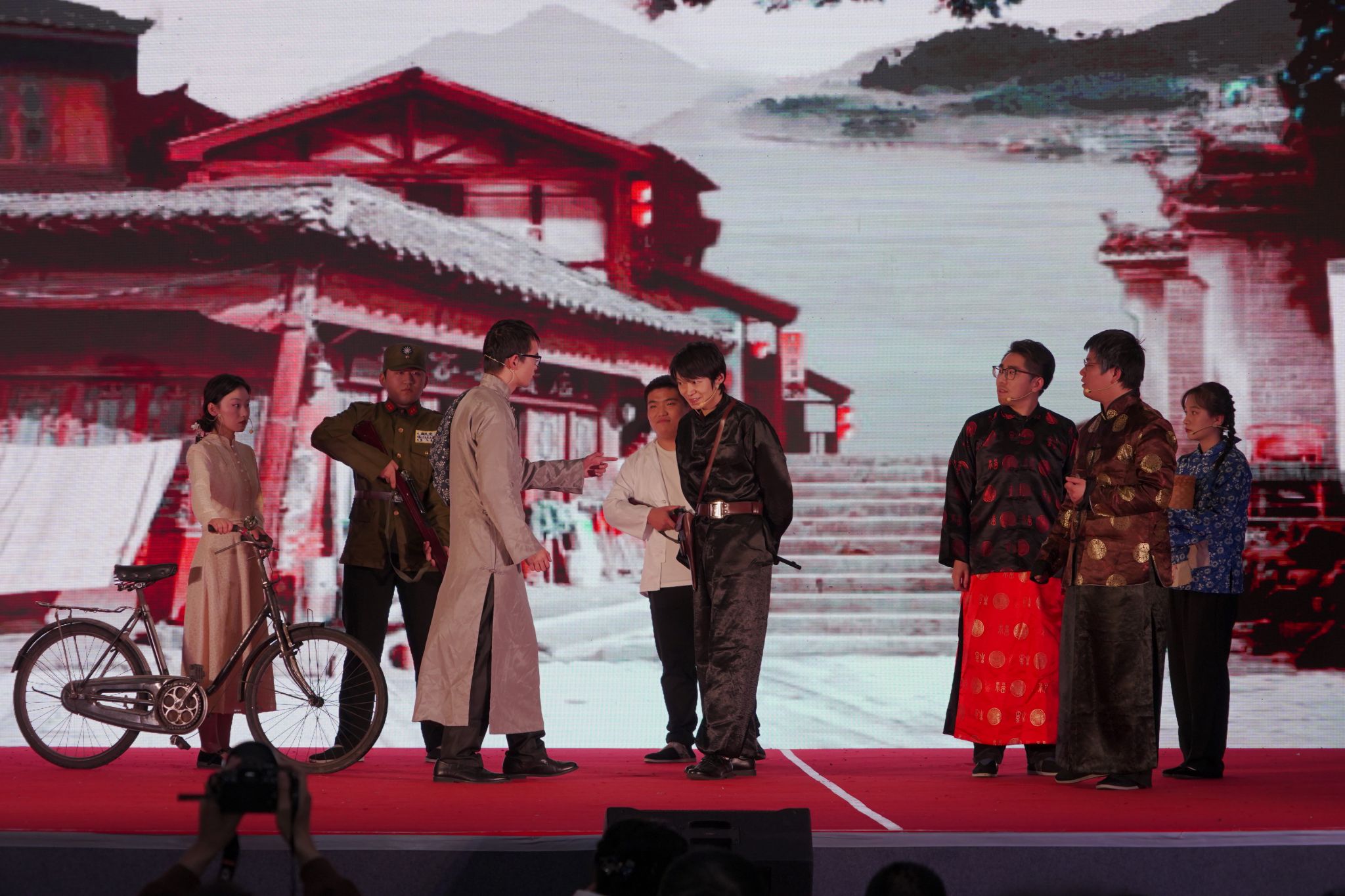 《风雨双河口》一剧由文传学院教师、安康市戏剧家协会副主席邹棠华担任编导,开元官网影视戏剧社30余名学生参演。该剧以“五四运动”和“双十二事变”两个历史事件为时代背景,演绎了一个发生在汉阴县双河口镇的红色题材爱情故事,展现了陕南人民在民族危亡的关键时刻所表现出的家国情怀以及为新中国建立所做出的重要贡献。该剧反映了民国时期汉阴县的人文历史,对汉阴县历史文化的挖掘与传承具有积极意义。