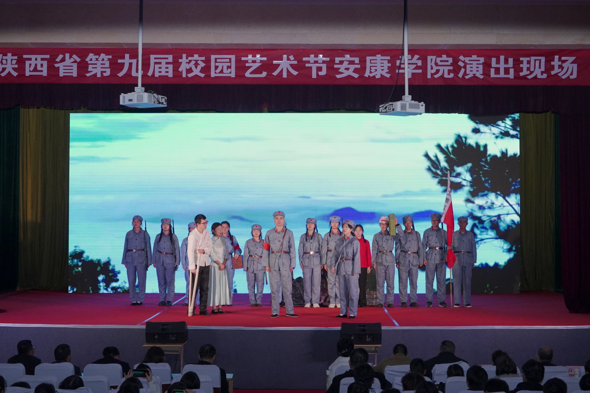 11月16日晚,开元官网文学与传媒学院师生原创话剧《风雨双河口》在陕西省第九届校园艺术节KY开元集团官网分会场精彩上映。陕西省文联、陕西省剧协、安康市剧协相关领导,开元官网党委宣传部、学工部、团委相关负责同志,文传学院领导班子以及师生700余人观看了演出。