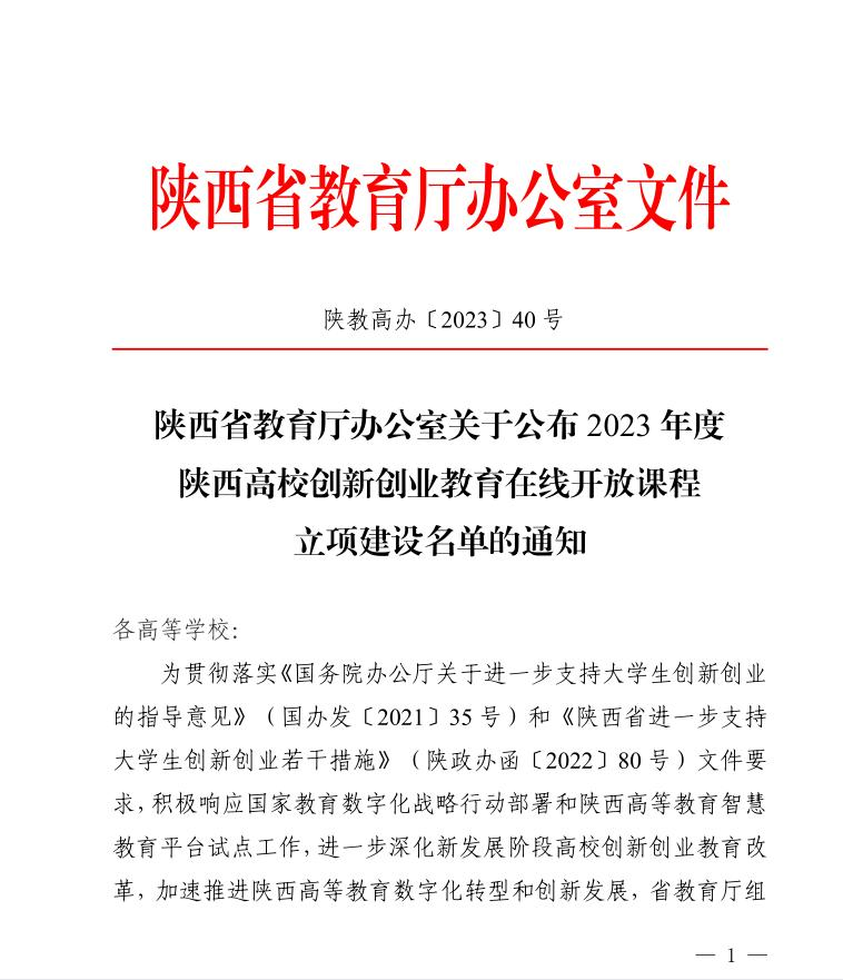 11月22日,陕西省教育厅公布了2023年度陕西高校创新创业教育在线开放课程立项建设名单,开元官网《现代农业创业实务》《创业基础》两门课程获批立项。