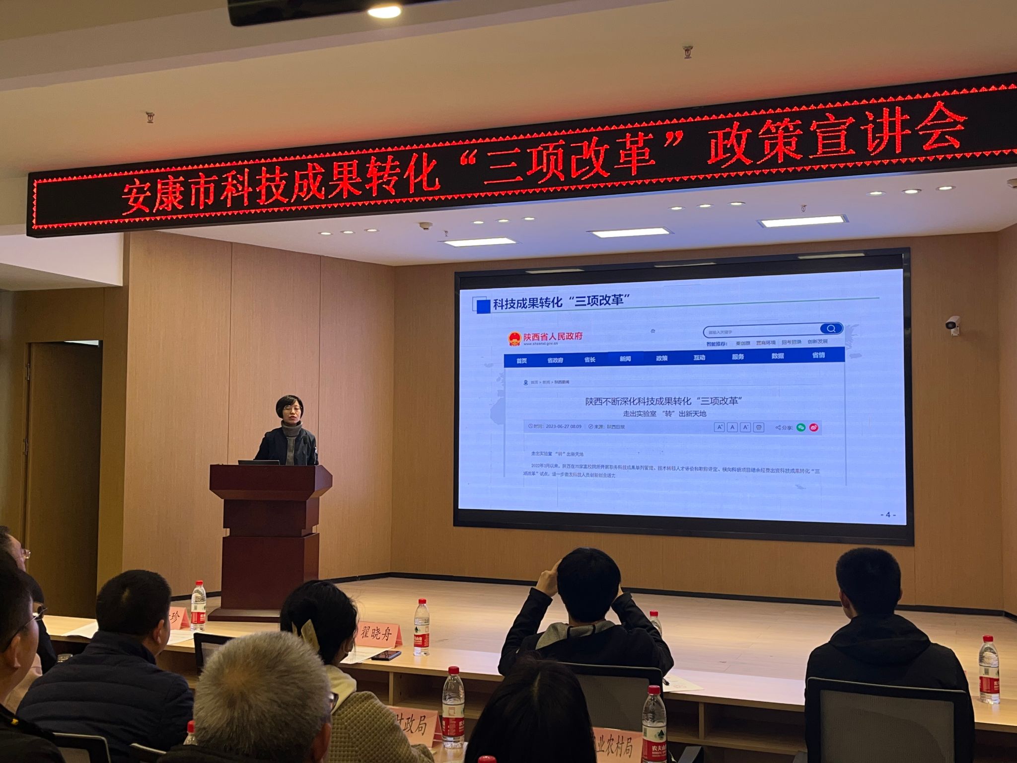 11月27日上午,安康市科技局联合KY开元集团官网、安康职业技术学院在乡村振兴学院会议室召开安康市科技成果转化“三项改革”政策宣讲会,开元官网科研处副处长李景林、黎欢吉与20余名持有成果待转化的教师参加了政策宣讲会。宣讲会由安康市科技局党组书记吴世珍主持。