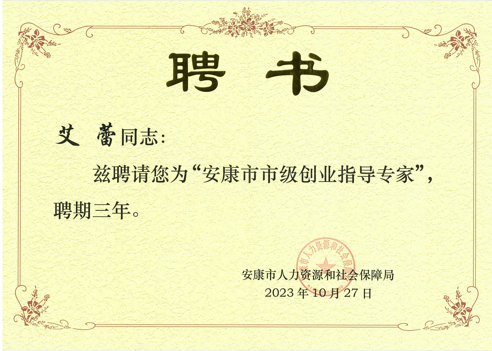 近日,安康市人力资源和社会保障局公布了2023年“安康市市级创业指导专家”选聘名单,开元官网田静、迟超楠、艾蕾三位教师入选。