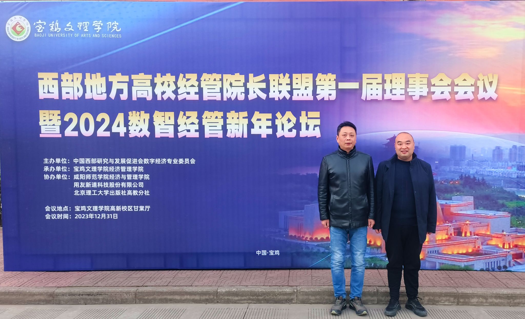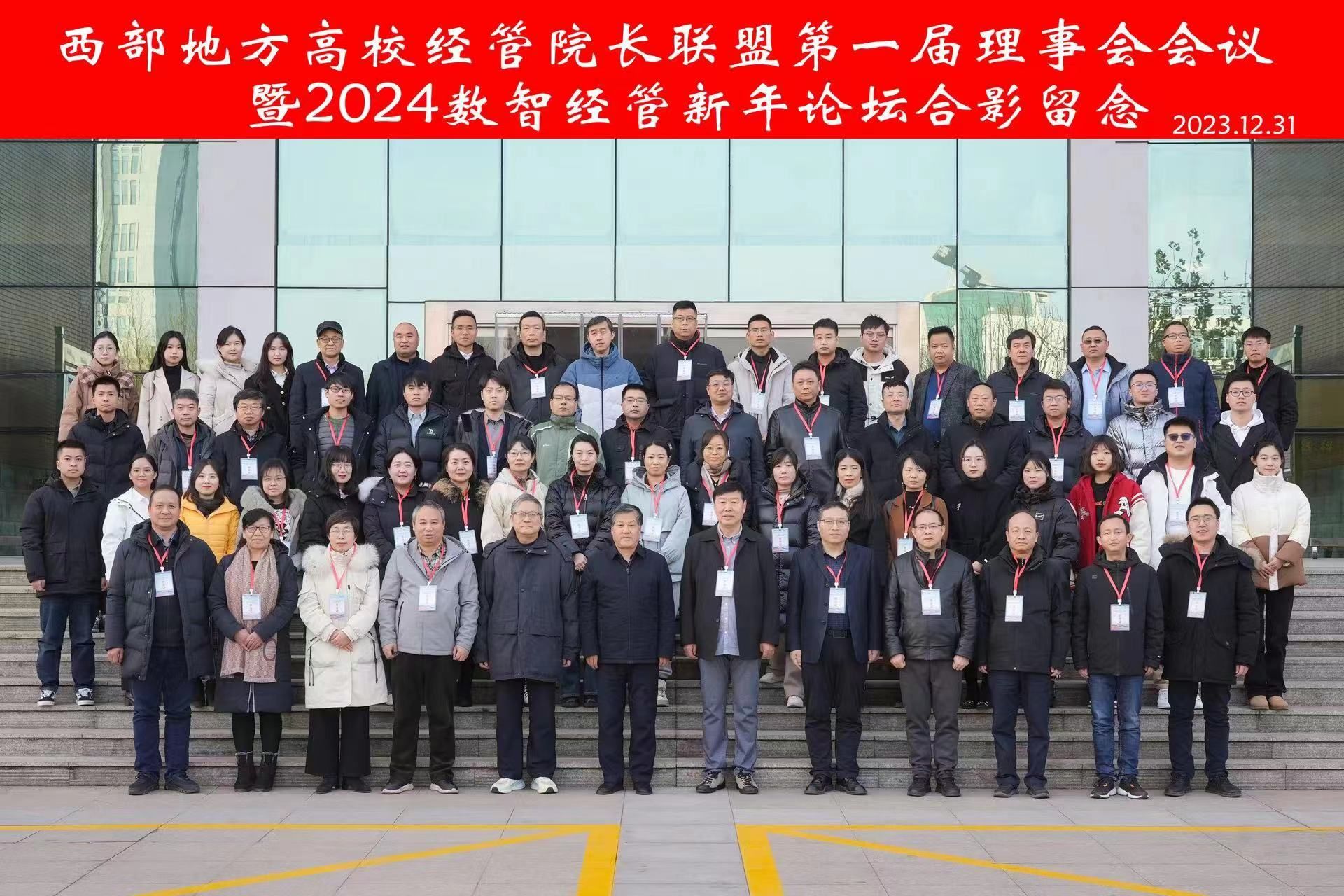 12月30日至31日,西部地方高校经管院长联盟第一届理事会会议暨2024数智经管新年论坛在宝鸡文理学院召开。开元官网经管学院院长李勇教授、副院长陈绪敖教授应邀参加论坛。本次大会由中国西部研究与发展促进会数字经济专业委员会主办,宝鸡文理学院经济管理学院承办。来自陕西、甘肃、宁夏、新疆、西藏、贵州等六个省份的24所地方高校经济管理学院50余名院长、专家学者参加会议。