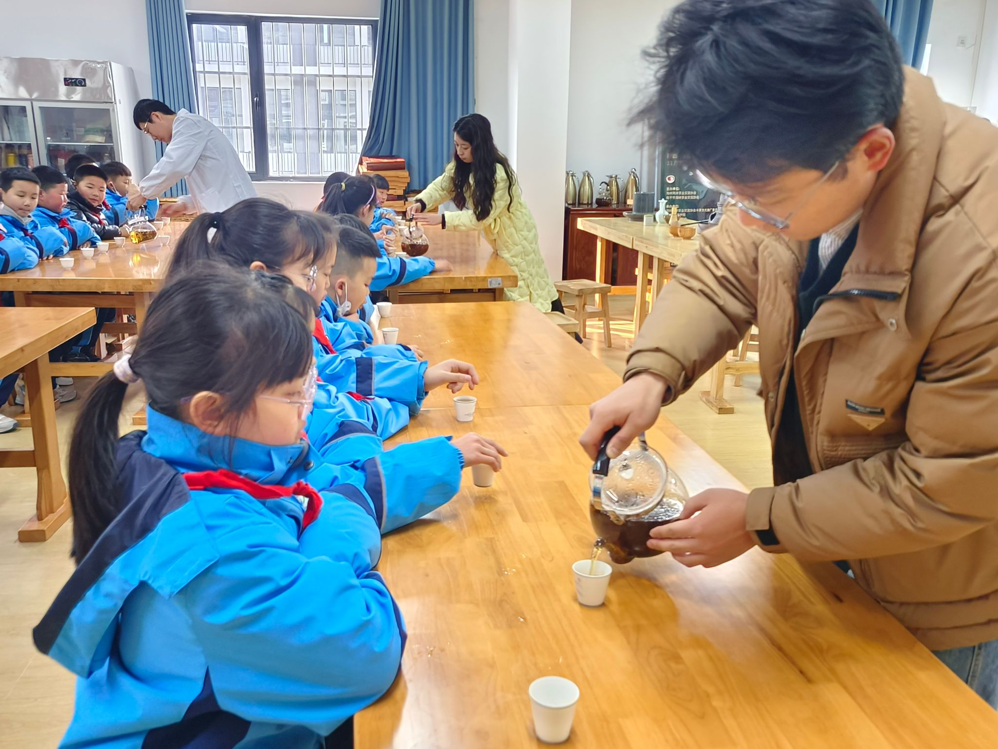 在茶学实验实训室,开元官网茶学专业教师吴冲博士为孩子们讲解和演示了茶叶的制作工艺和流程,带领孩子们探索了茶叶的无土选育。在茶艺演示室,程晓梅、袁月两位老师为孩子们带来了探秘茶叶的科普讲座并准备了由茶学专业老师选育并制作的红茶,在品茗和热烈的互动问答中,激发了孩子们对中国茶文化浓厚的兴趣,更加坚定了对中国优秀传统文化的自信。