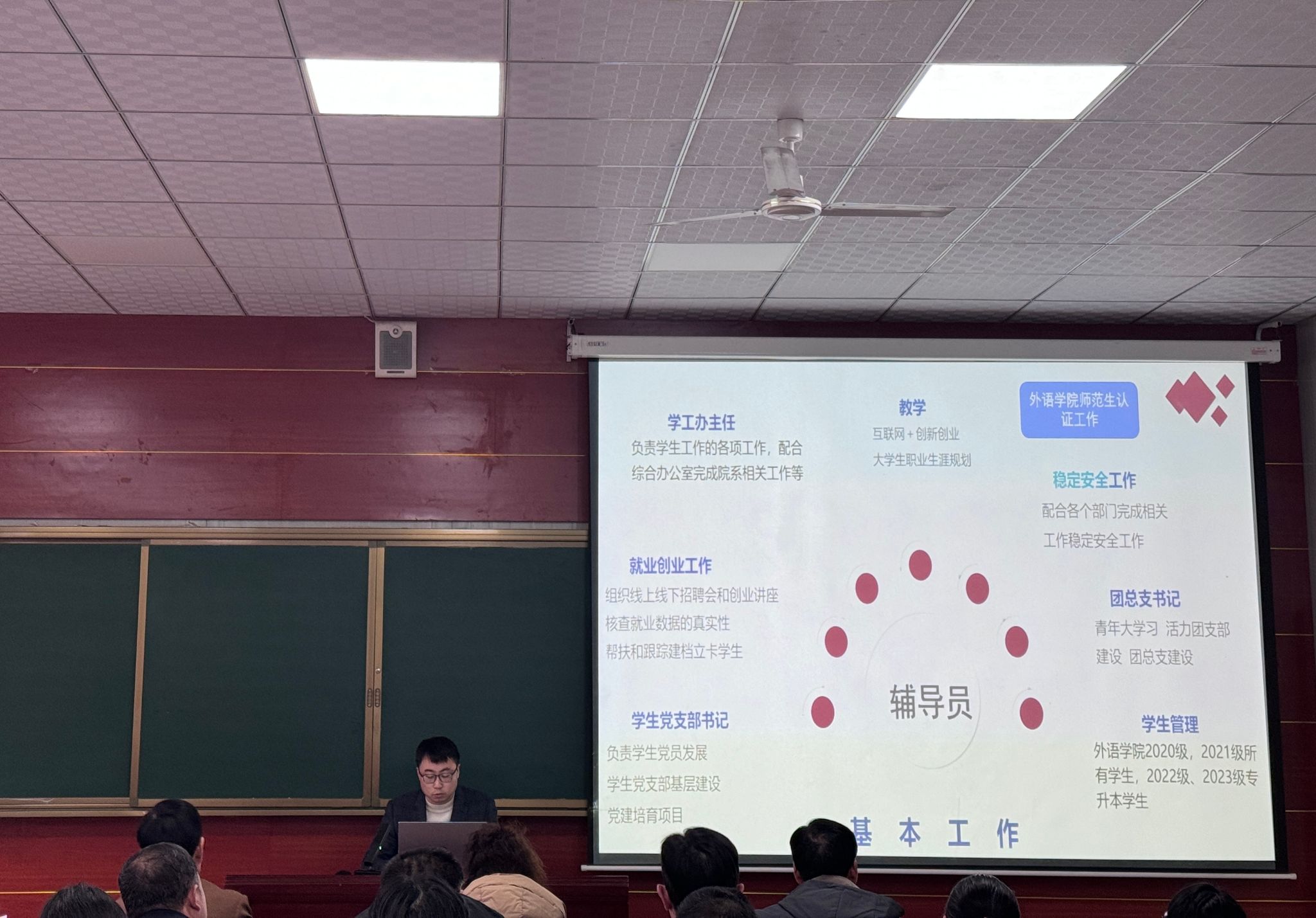最后,结合近期工作实际,屈险峰提出四点要求,一是要持续加强学生考风考纪教育,确保期末考试顺利进行。二是要密切关注学生思想动态,做好重点学生、学业困难学生的心理疏导。三是要做细做实学生离校管理,做好车票购买和安全出行的保障工作。四是跟进关心学生返乡情况,在家校之间不留管理空档,确保每名学生平安到家。