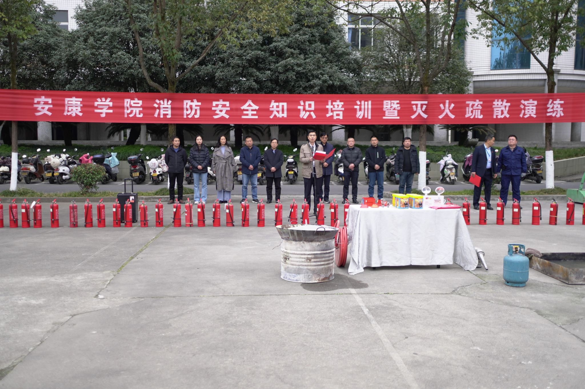 屈险峰做动员讲话。他指出,举办春季消防知识培训暨灭火演练,是为了认真学习贯彻习近平总书记关于消防安全的重要指示批示精神,落实上级关于加强校园消防安全的通知要求,进一步普及消防安全常识,强化师生员工的消防安全意识,增强防火疏散逃生能力,为学校的改革发展创造良好的消防安全环境。他强调,全校师生要牢记“隐患险于明火,防范胜于救灾,责任重于泰山”的要求,以此活动为契机,学习消防知识,掌握消防技能,提高消防安全素质,积极营造“预防为主,生命至上”的消防安全氛围,切实维护全校师生生命财产安全和校园稳定。