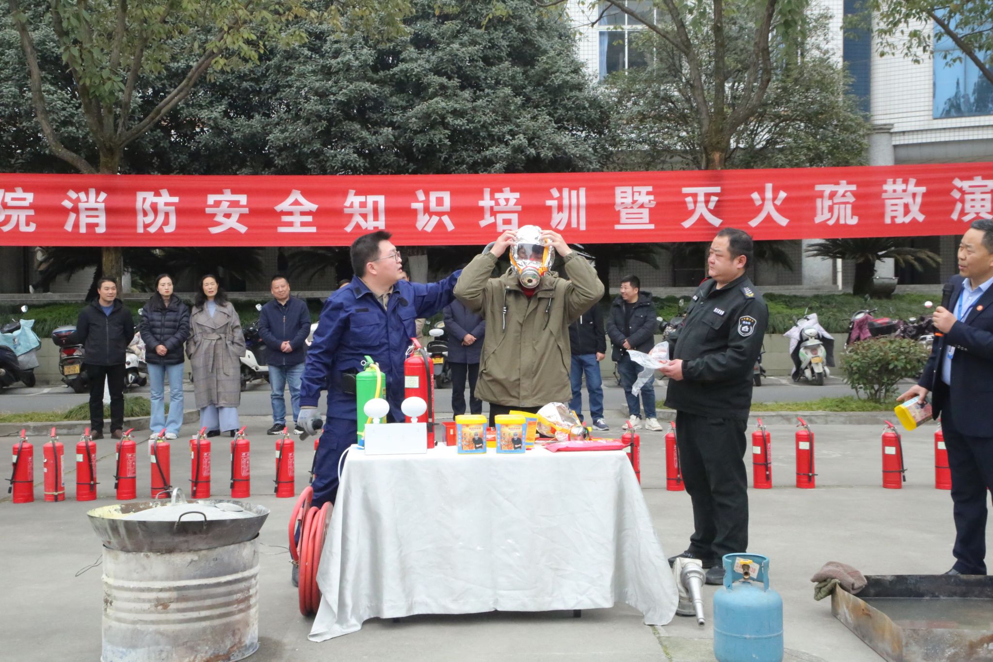 保卫处根据消防“四个能力建设”的要求,为师生员工做消防救援器材讲解和灭火逃生知识培训,现场演示了不同类型灭火器的使用方法。参练人员进行了模拟火灾扑救和疏散逃生演练。