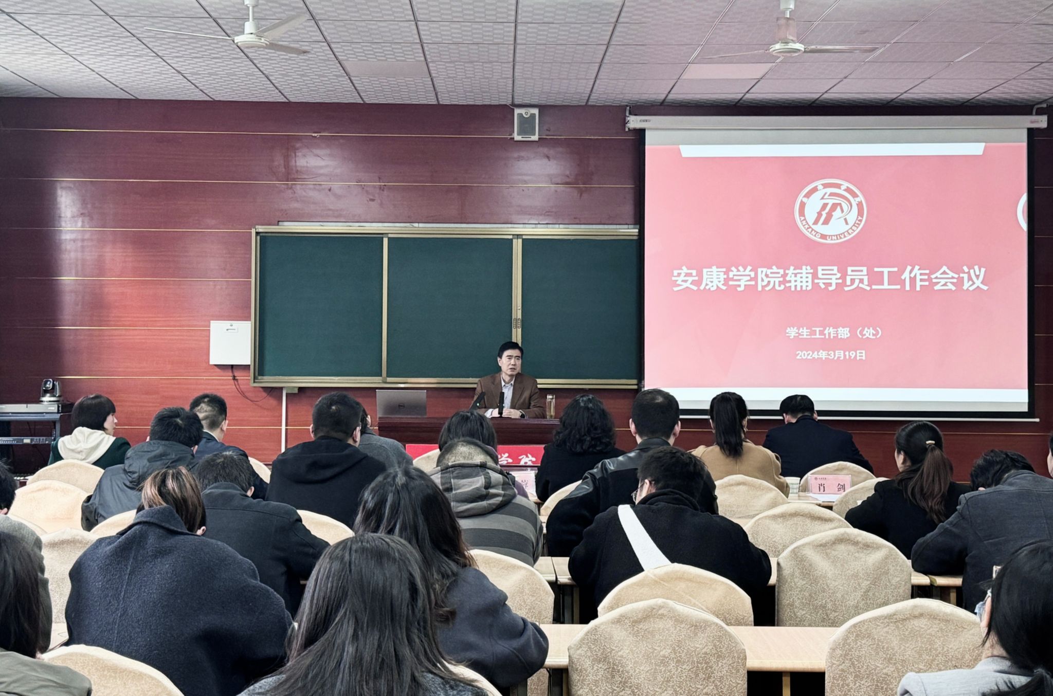 李岩结合省厅和学校工作要求,从学生思想政治教育、新生入学教育及毕业生教育、学风建设、资助工作、日常管理工作、心理健康教育、国防教育、公寓文化节等8个方面对本学期学生工作重点任务进行部署。