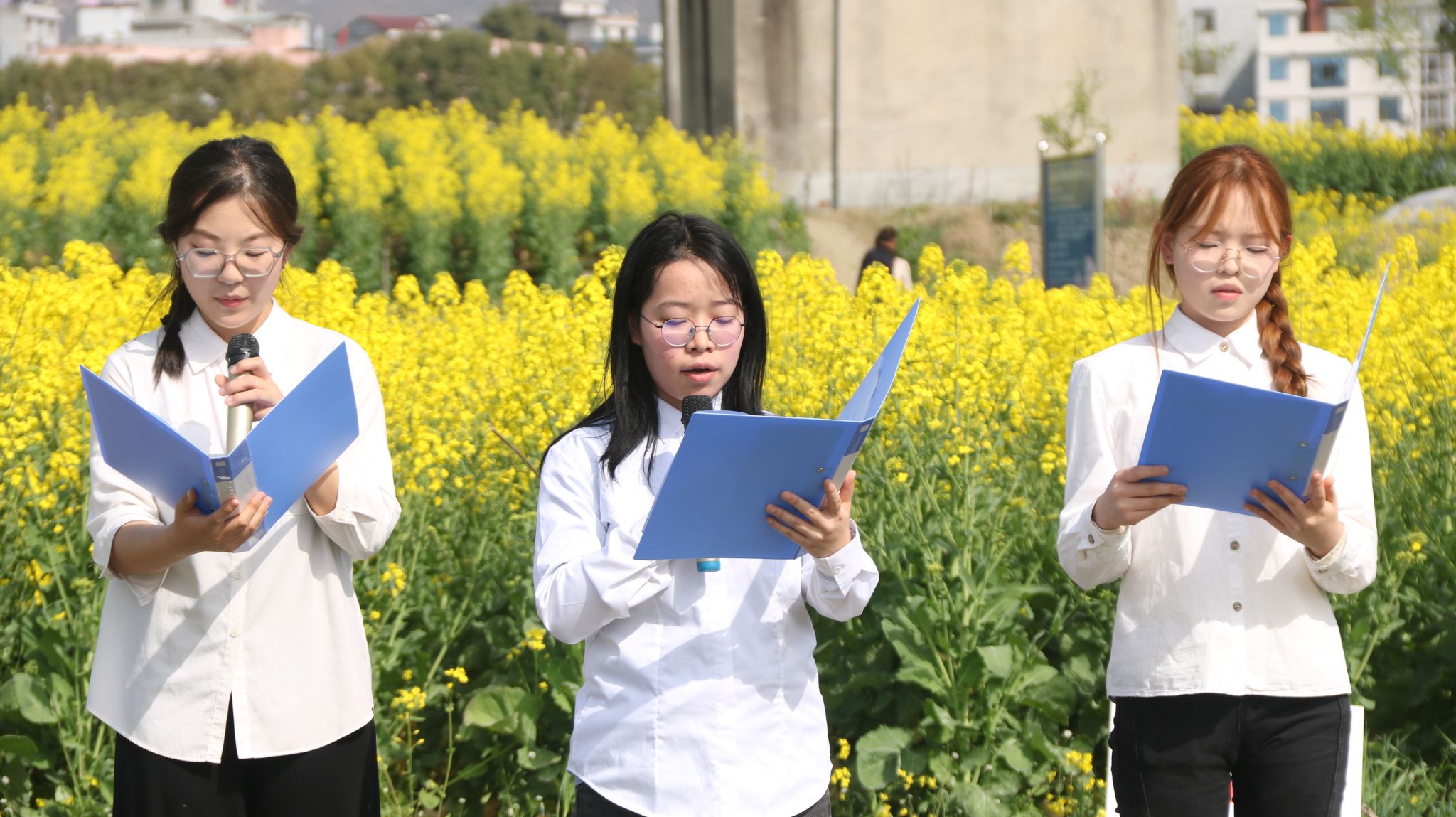 本届迎春诗歌朗诵会从2月下旬筹备启动,经过预赛选拔,最终有16组60余名同学参加决赛。本届诗歌朗诵会由影视戏剧社承办,文传学院党总支副书记杨海蓉,播音主持社、语言文字社社团指导教师黄治强、曹璇璇担任评委。在田园花海中,同学们满怀深情歌咏祖国、歌咏新时代,歌唱青春,畅想美好生活。