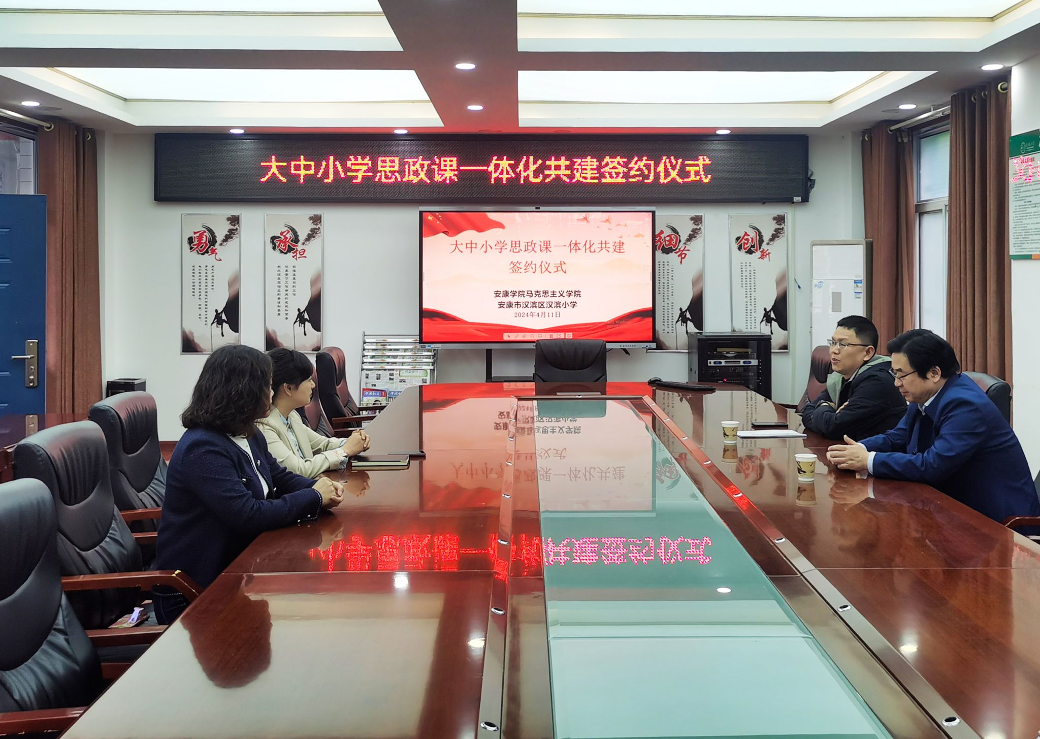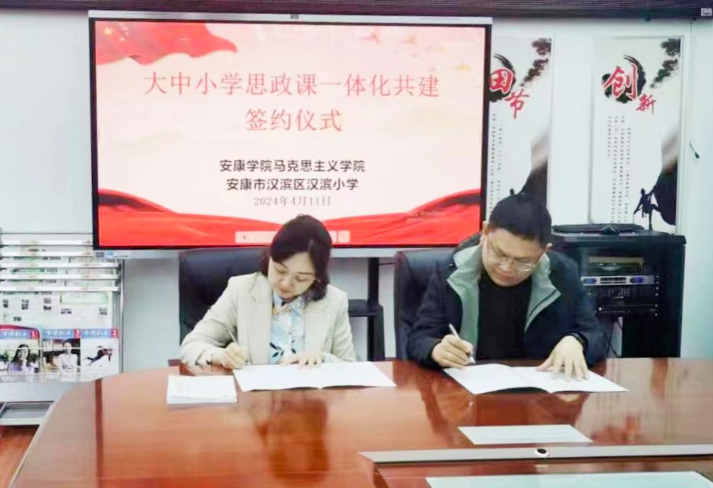 4月11日,开元官网马克思主义学院与汉滨小学签订“大中小思政课一体化共建协议”,汉滨小学校长肖静、副校长陈江楠、省级思政课教学能手胡苗苗,马克思主义学院院长单林波、现代农业与生物科技学院院长王健参加了协议签订活动。