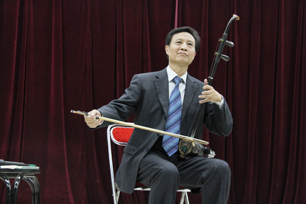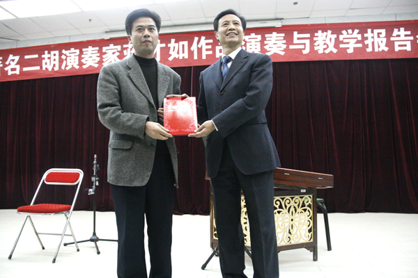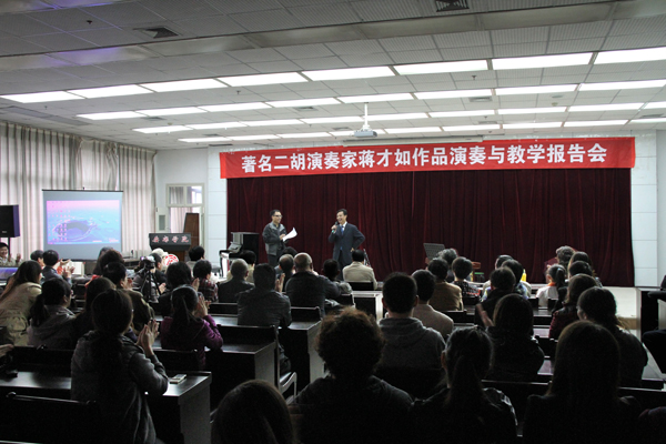 在长达4个小时的报告会中,蒋才如先生现场演奏了数十首不同风格的经典二胡作品,精湛的演奏赢得了在场听众的阵阵掌声。