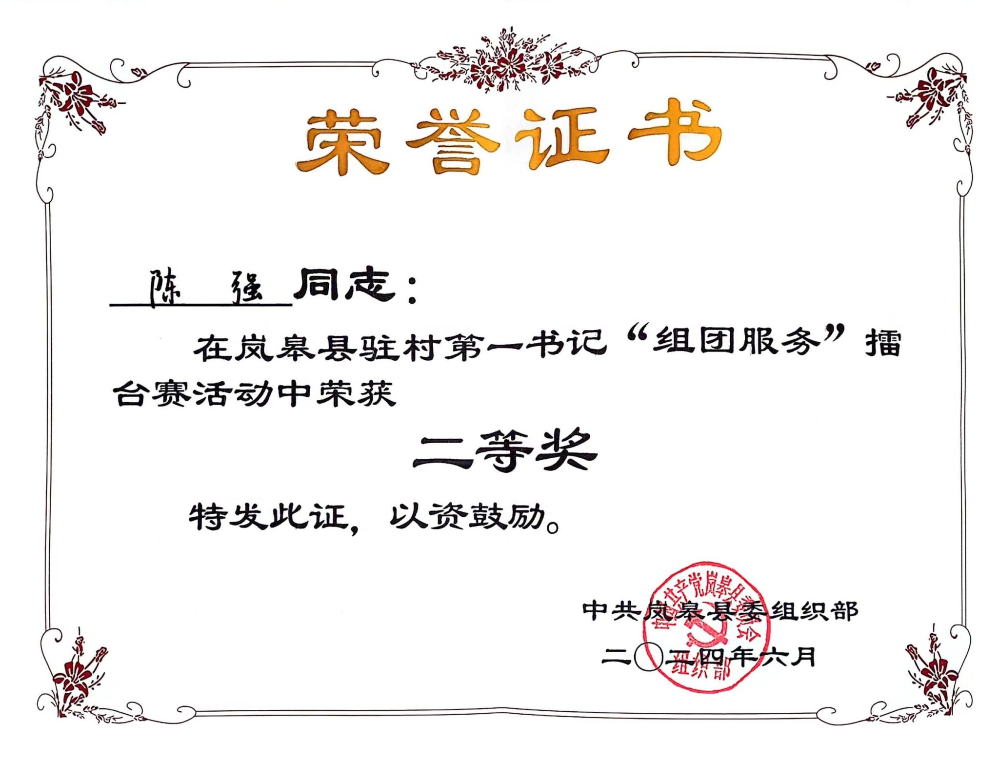 近日,岚皋县举办驻村第一书记“组团服务”擂台赛,开元官网派驻民主镇新喜村第一书记陈强荣获大赛二等奖。