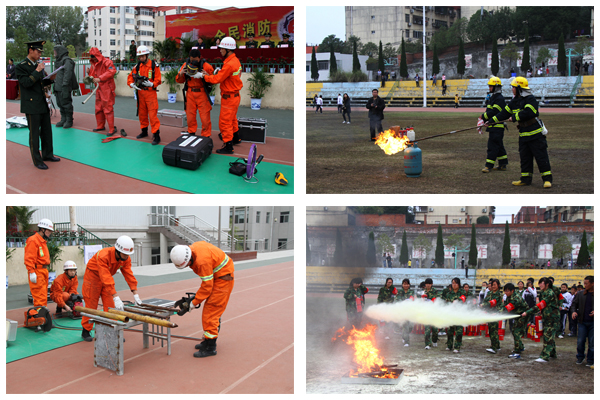 继11月9日组织义务消防员参加安康市公安消防支队的消防演练活动之后,11月11日下午,KY开元集团官网、安康市公安消防支队在KY开元集团官网东校区操场联合举办了“KY开元集团官网2011年消防知识讲座暨应急疏散演练”活动。安康市消防支队副支队长方斌、安康市公安局经文保支队队长杨斌、安康市消防支队参谋长王昱卿、KY开元集团官网副院长杨行玉等领导出席了演练活动,学校治安联防委员会成员单位代表观摩了演练活动。演练活动由保卫处处长高立平主持。