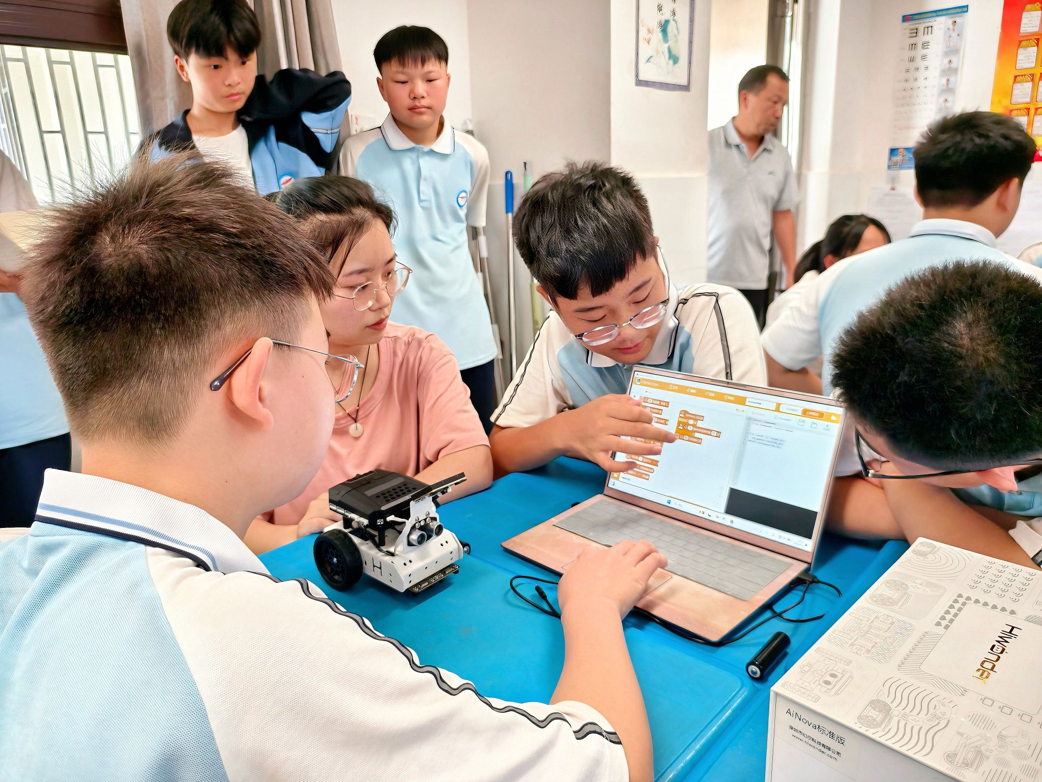 活动中,团队指导教师姚娜和学生成员展示了无人驾驶智能车在“外卖骑手”及“急救先锋”板块的具体操作。通过摄像头以及mixly程序设计,无人驾驶智能车从起点出发,进行道路直行、标志识别、转弯掉头等动作,顺利完成指定任务。